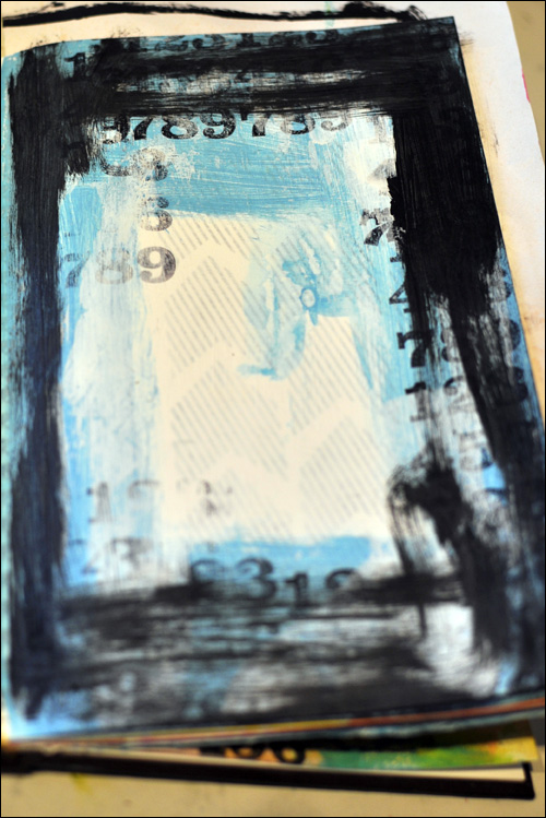 I prepared the page in my journal with some blue paint and stamping.