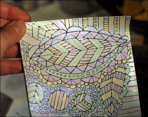 I’ve also been playing with some doodling. I used a black pen and then coloured the pattern in with Twinklings.