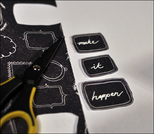 Glossy Accents is also fab to use to use as a glue, for heavier embellishments. I love that the tip is so thin, making the writing above so easy. Another idea is to add the Glossy Accents to details of a patterned paper that you want to highlight or to create other patterns than writing (dots, lines, doodles), to use in the same resist technique as above.