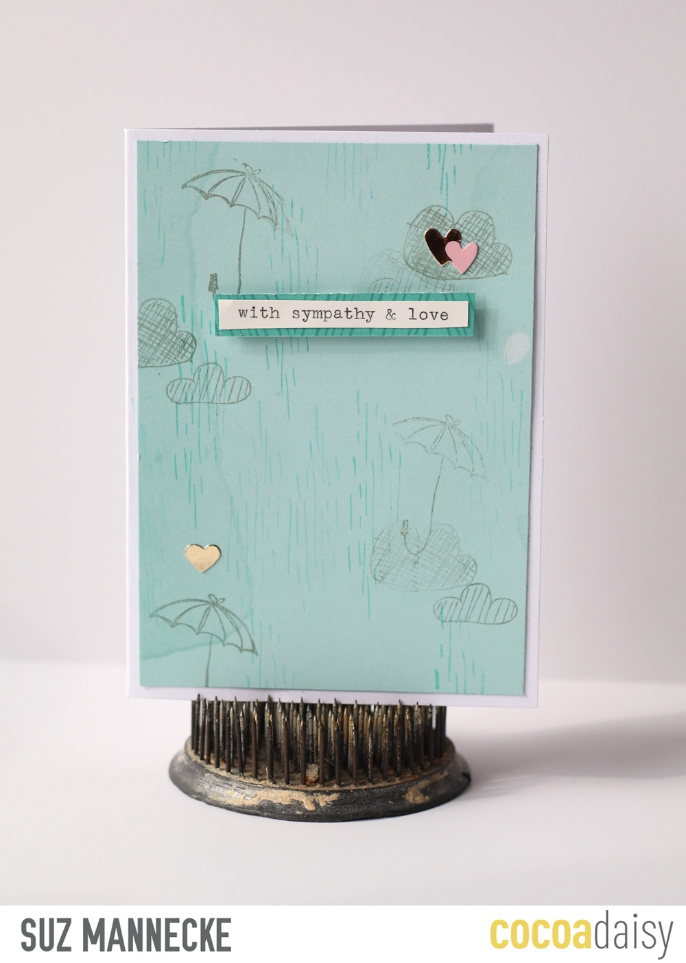Suz has created this sweet card. The clouds, umbrellas and rain is so fitting. Perfect!! I would never have thought of teaming up a sympathy card with rain and clouds, the two go well together.
