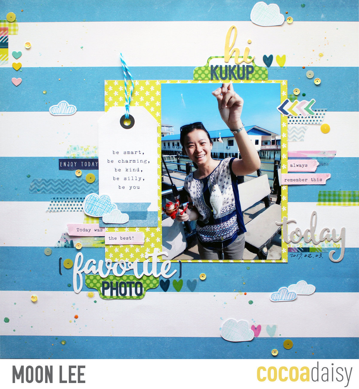 To Moonlee they remind her of the wavesa on the ocean. She’s stamped them in blue and cut them out to add to her page. I love her way of thinking. What a great idea!!