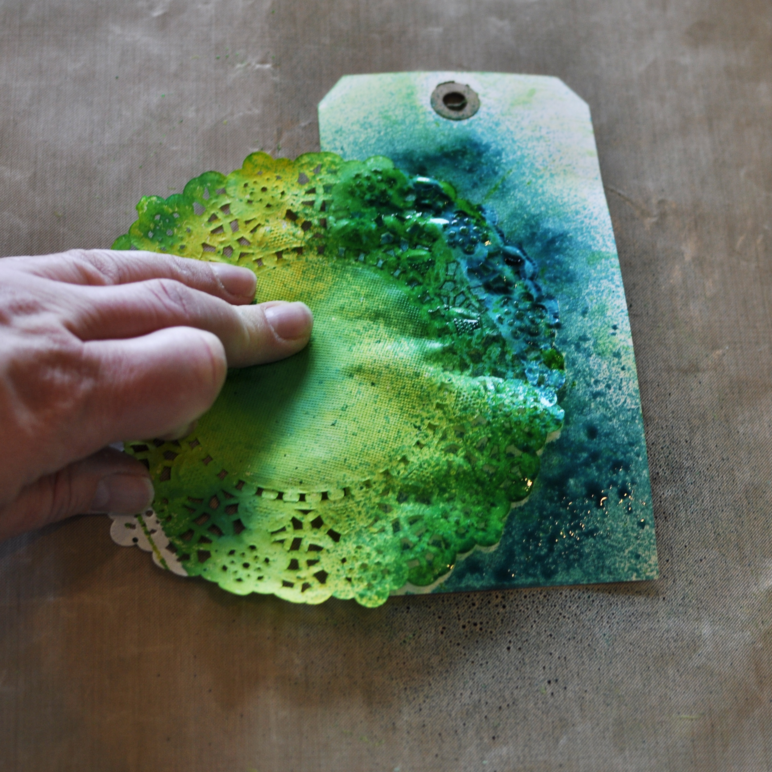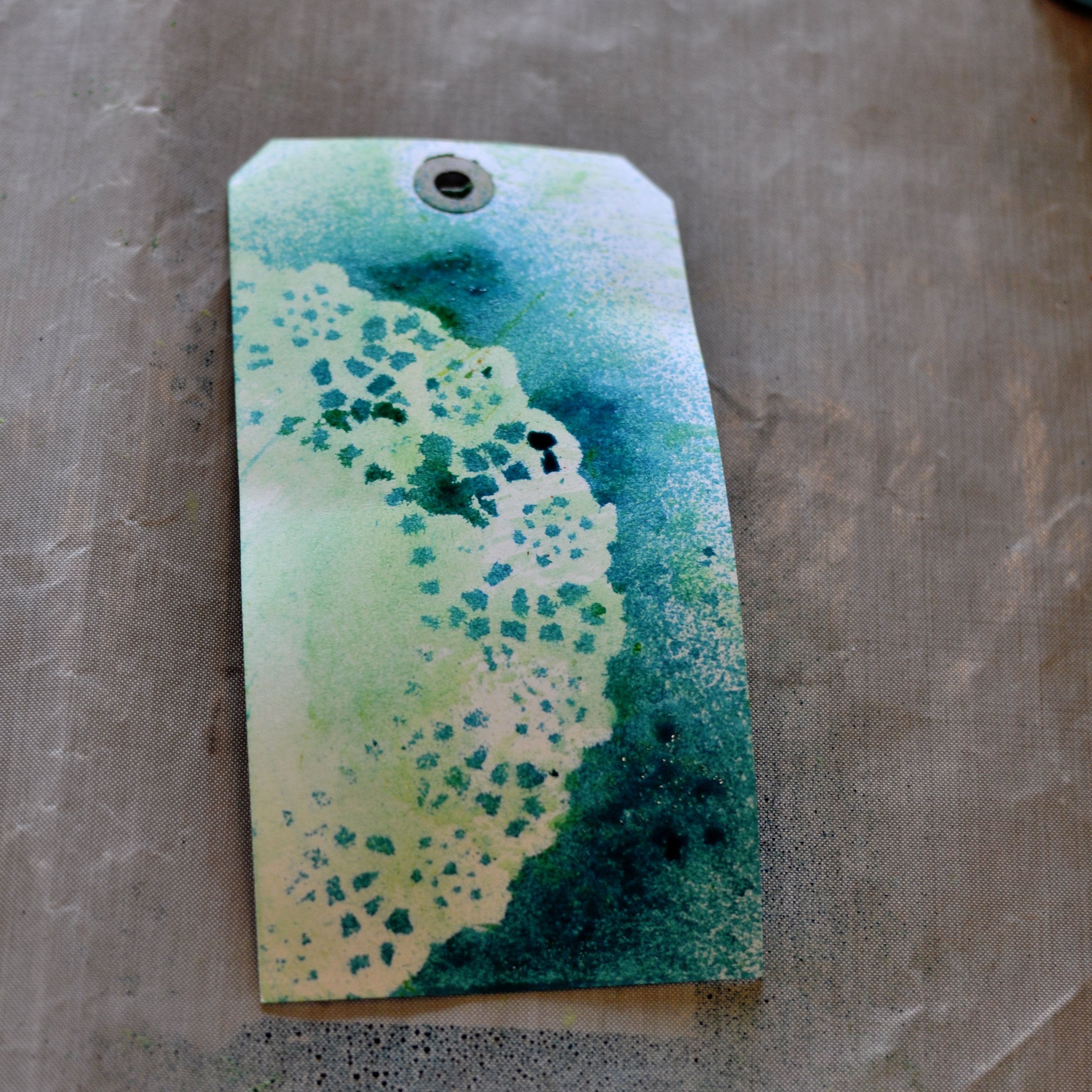 I used one of the doilies as a mask when spraying…