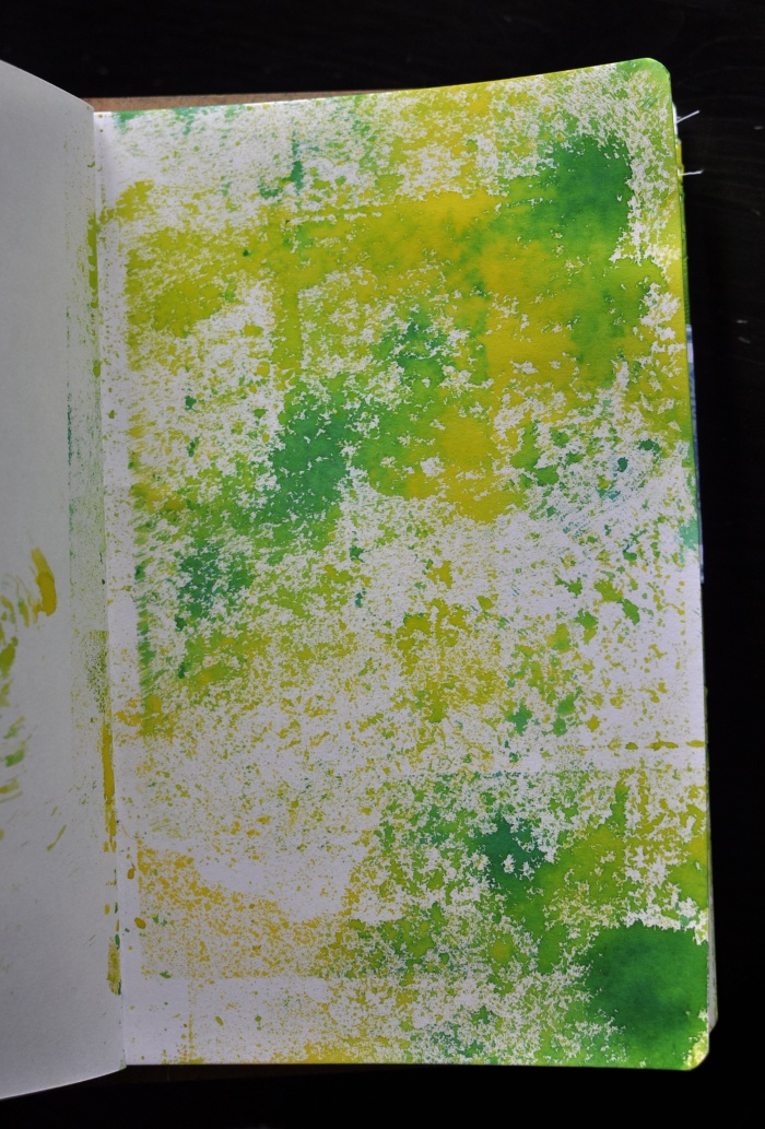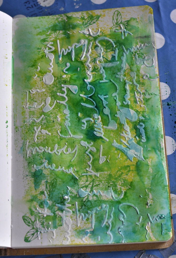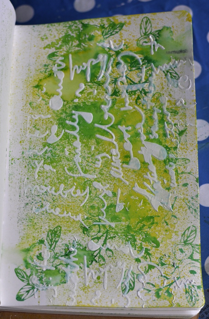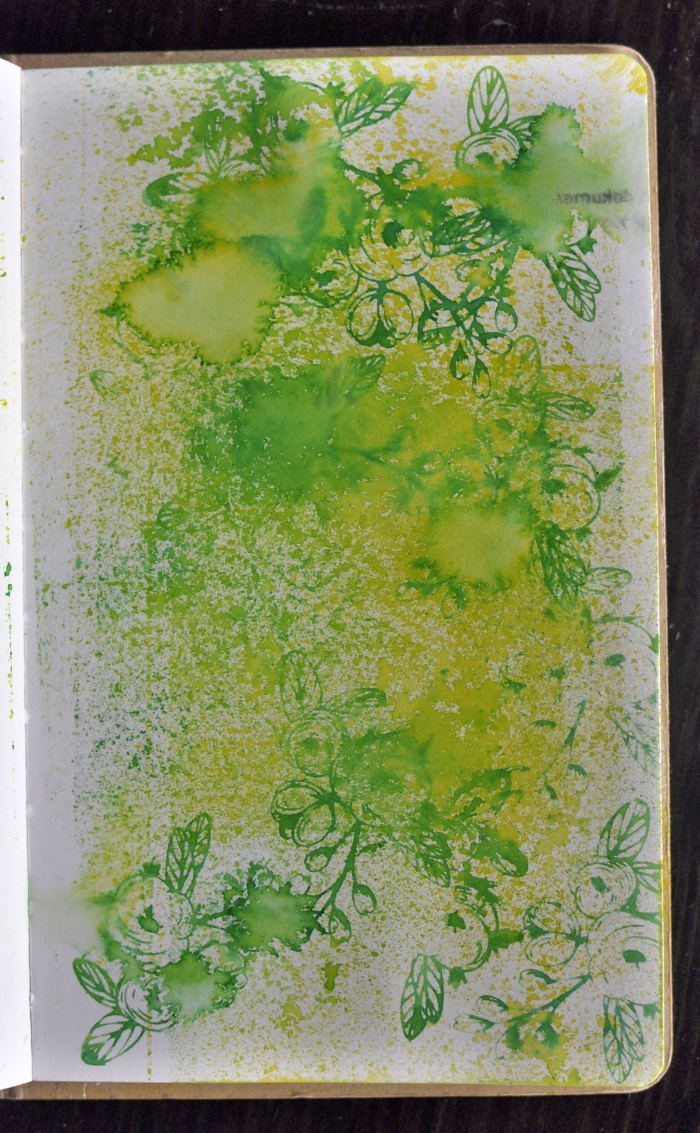 And I combined some stamping, pressing and spritzing with water…