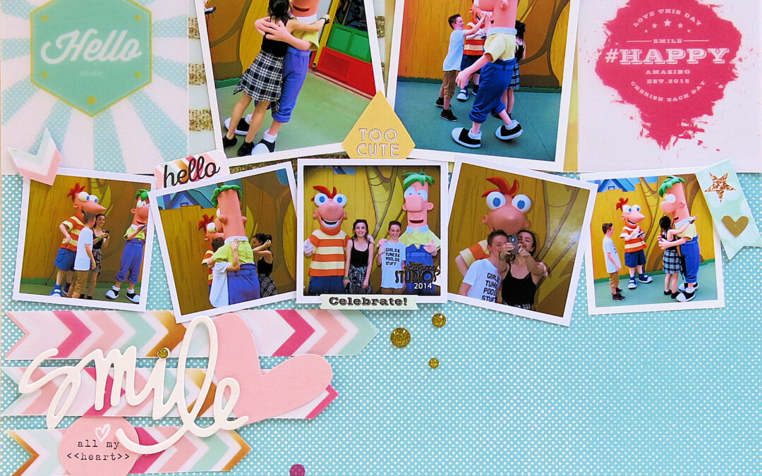I wanted to share a LO with you today that I made using a piece of the Webster’s Pages ‘Happy Vellum’ which comes in the ‘paper addon’.