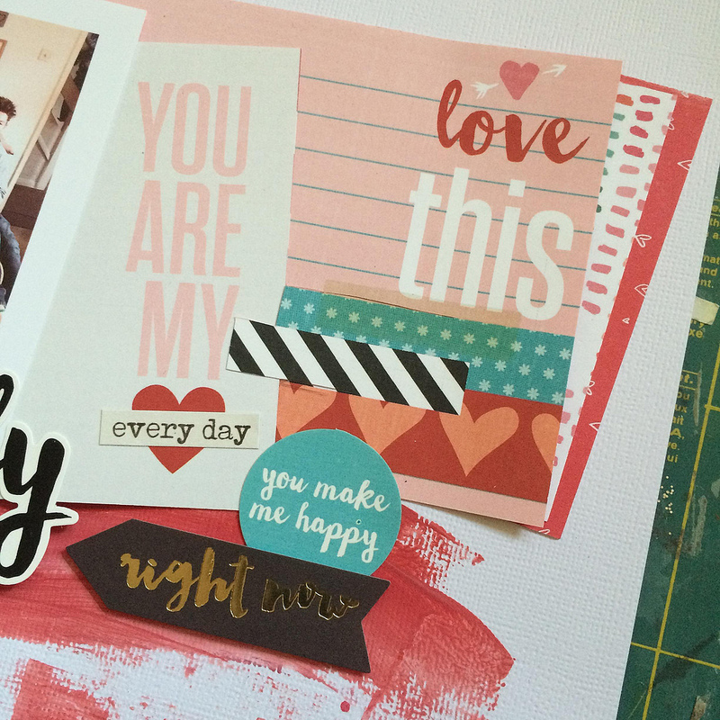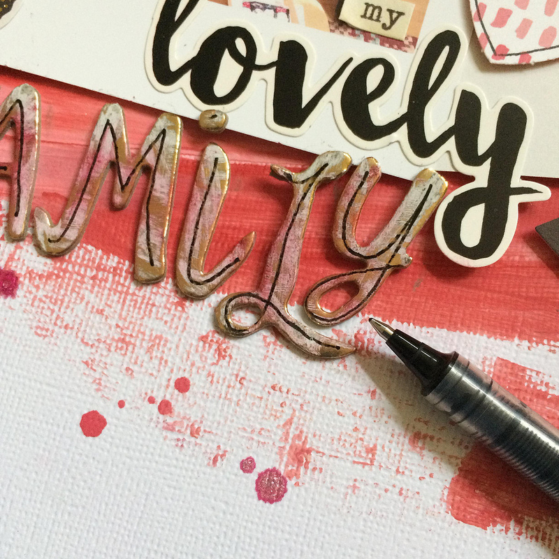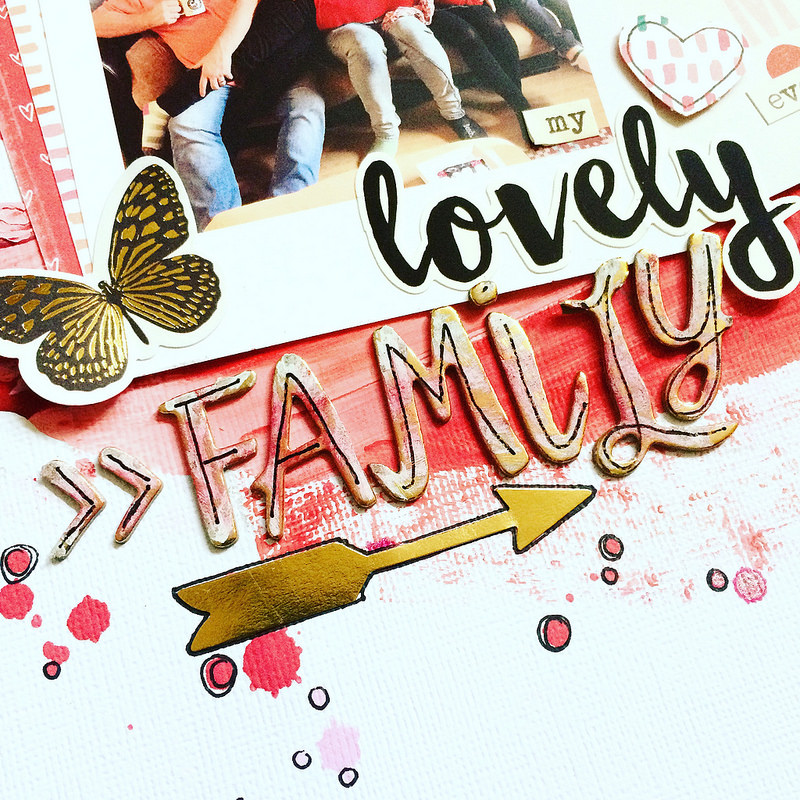 When I opened up my kit yesterday I have to say I loved it. The colours were so beautifully balanced and I love the good mix of papers, sticker and bits and pieces…but for me, if there was one item that I had to pick it would be the gold shiny alphas. They just aren’t me. I’m not a blingy type of person at all. So today I am going to share with you how I tackled this. I also have a few kit tips to share that I will throw in here and there.