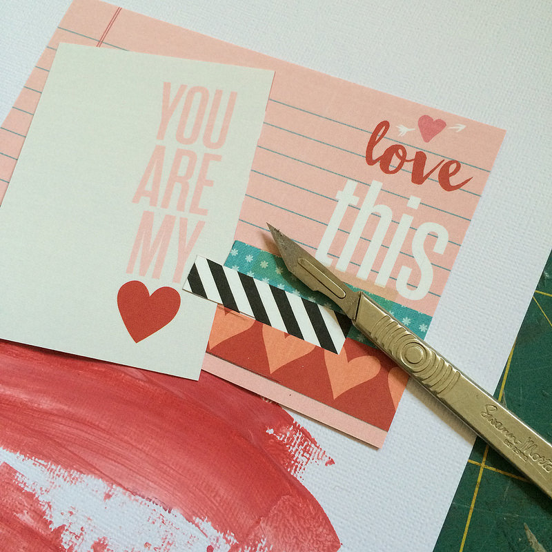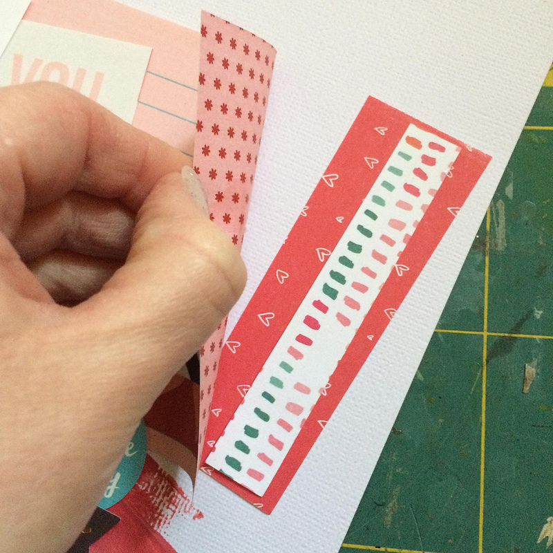 I started my LO by taking some of the DITL cards from the DITL Kit. I took a craft knife to one of them enabling me to slide another card in to it.