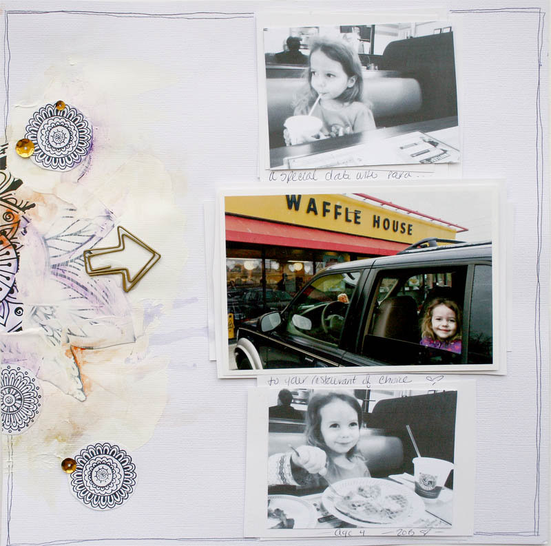 Ashli used the doilee stamps on her LO this month here. I love that she stamped the images and then cut them out to stick on the page. Such a great idea. A great way to create a fun background without that worry of stamping straight on to our cardstock in case it doesn’t quite go right first time. Great idea Ashli.