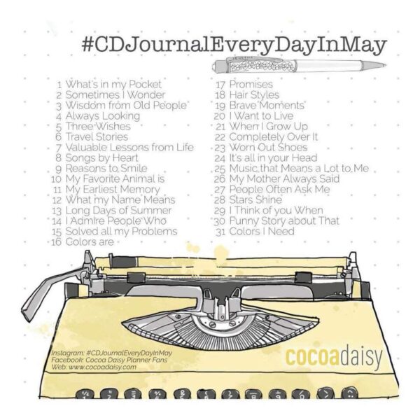 The Cocoa Daisy Planner Team invites you to go on a journey with us for the month of May: Let’s journal every day in May with the #CDJournalEveryDayinMay Challenge.