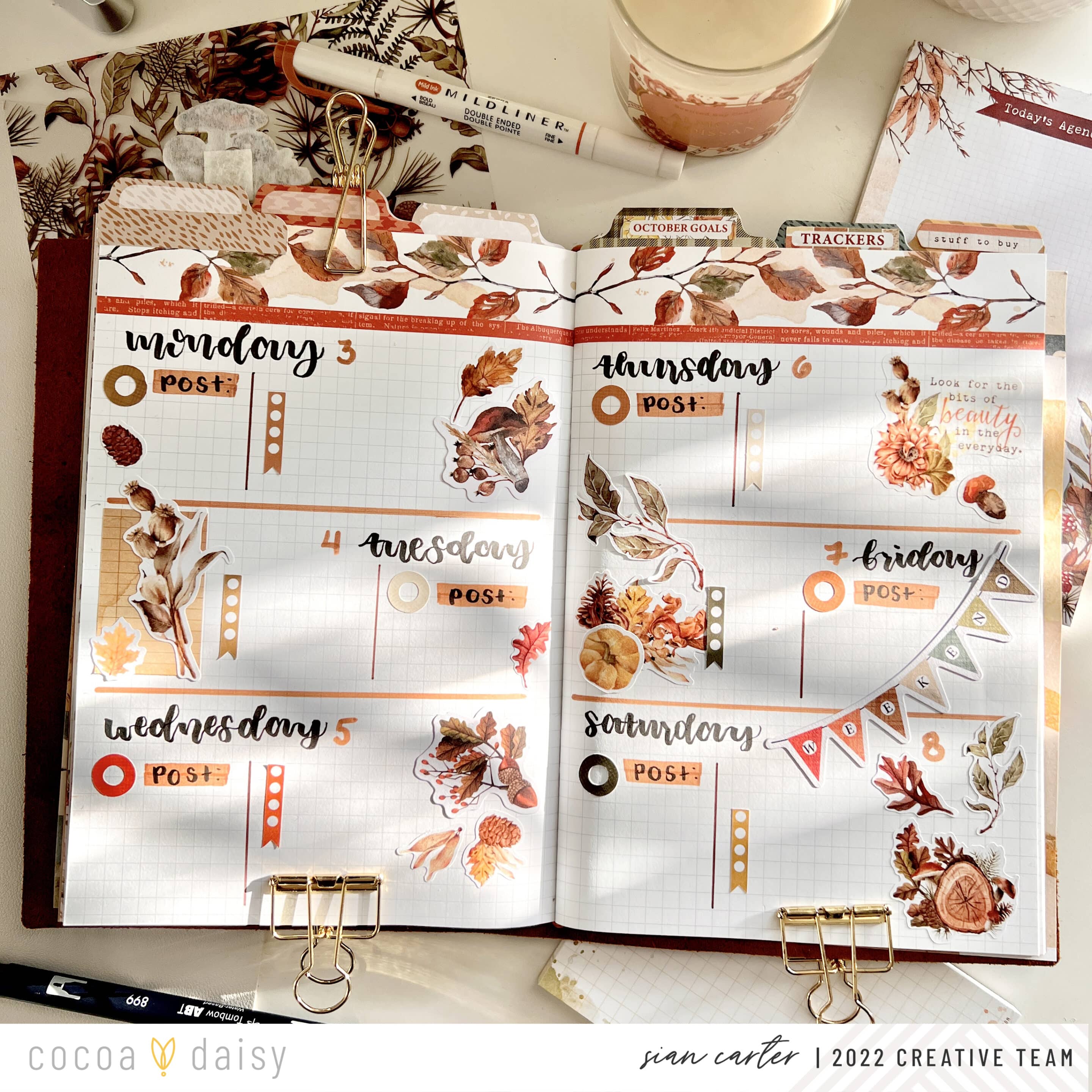 As you can see, I loved using the die cut and functional elements to create a balanced weekly spread, which is effortless to do with your monthly Autumn Thicket Planner Kit and Autumn Thicket Planner Add-On Kit.