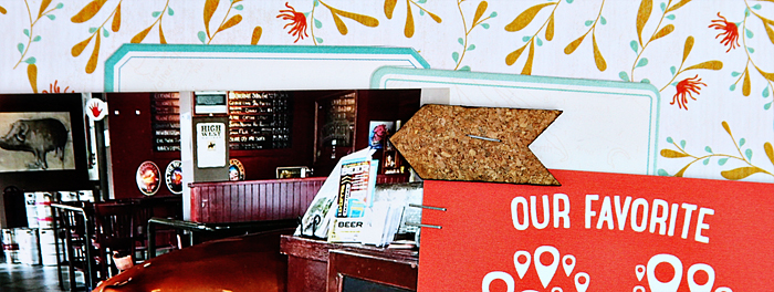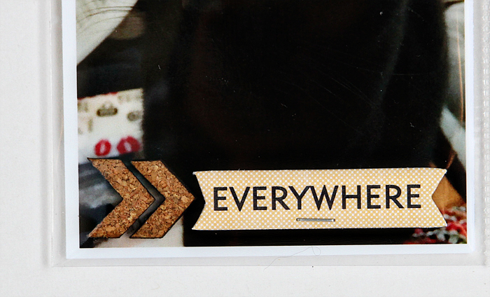 Now, those cute cork arrows/chevrons were a favorite of mine in the main Let’s Go! kit! LOVE them! I’m always a sucker for something “natural” to go with my bright colors! So, cork, wood veneer and metals are my “go to” embellishments.