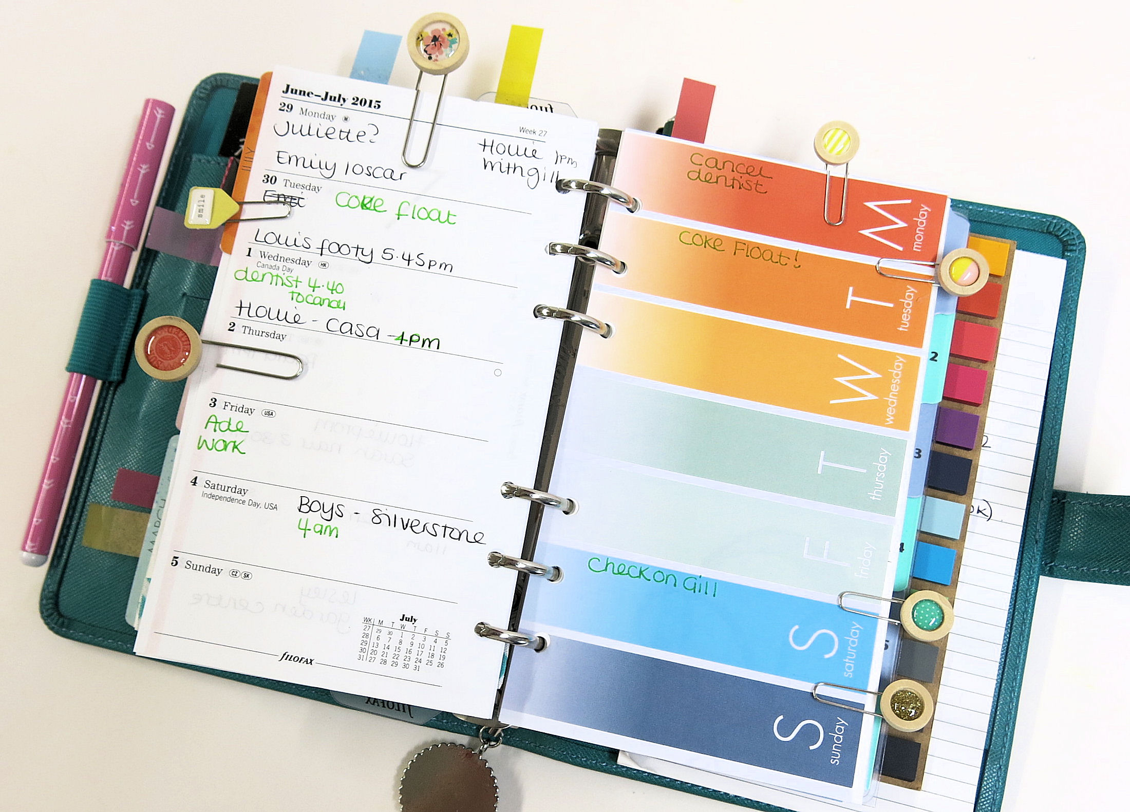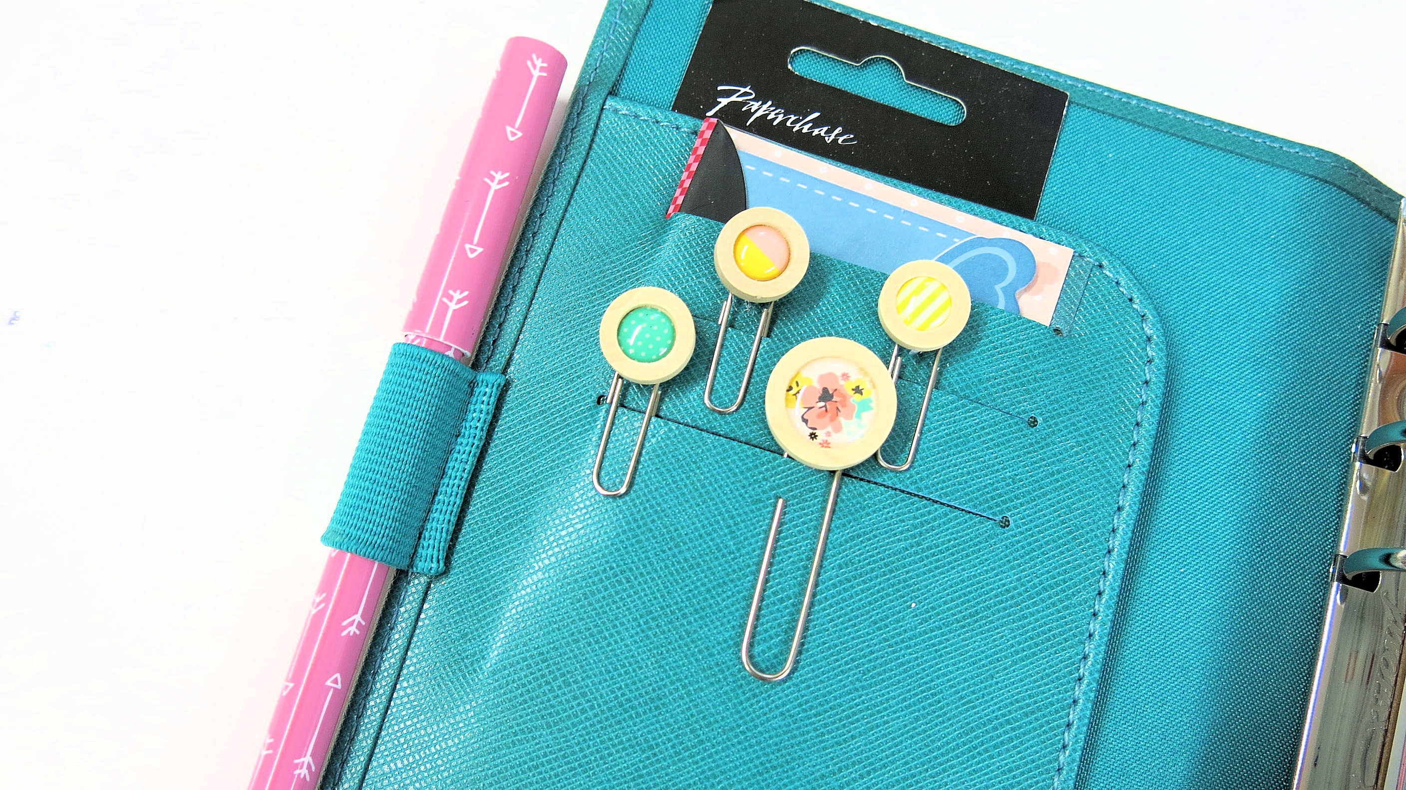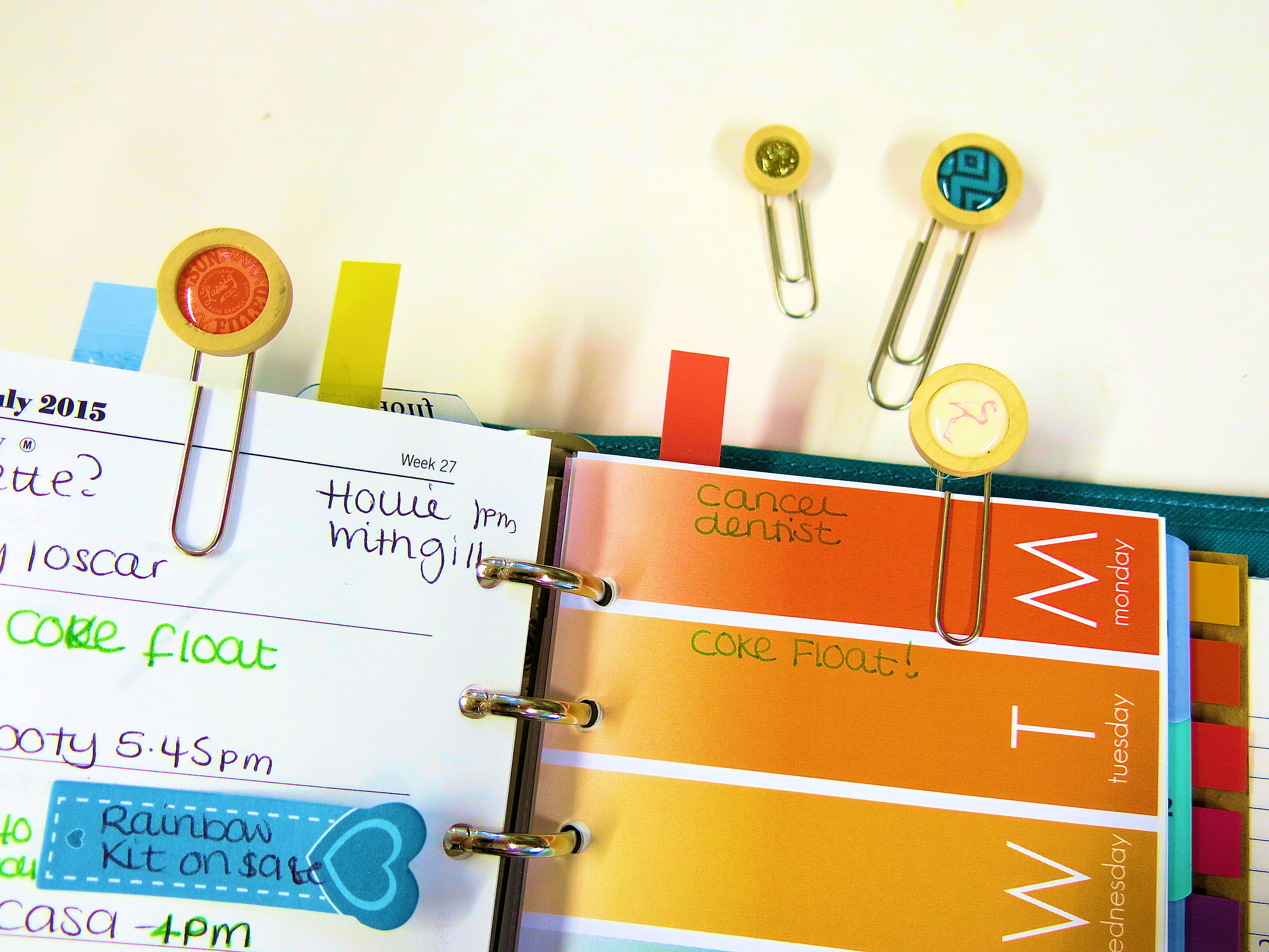 With a small blob of glue on the back and the paperclip pushed in to the glue, you have amazing paperclips for your planner.