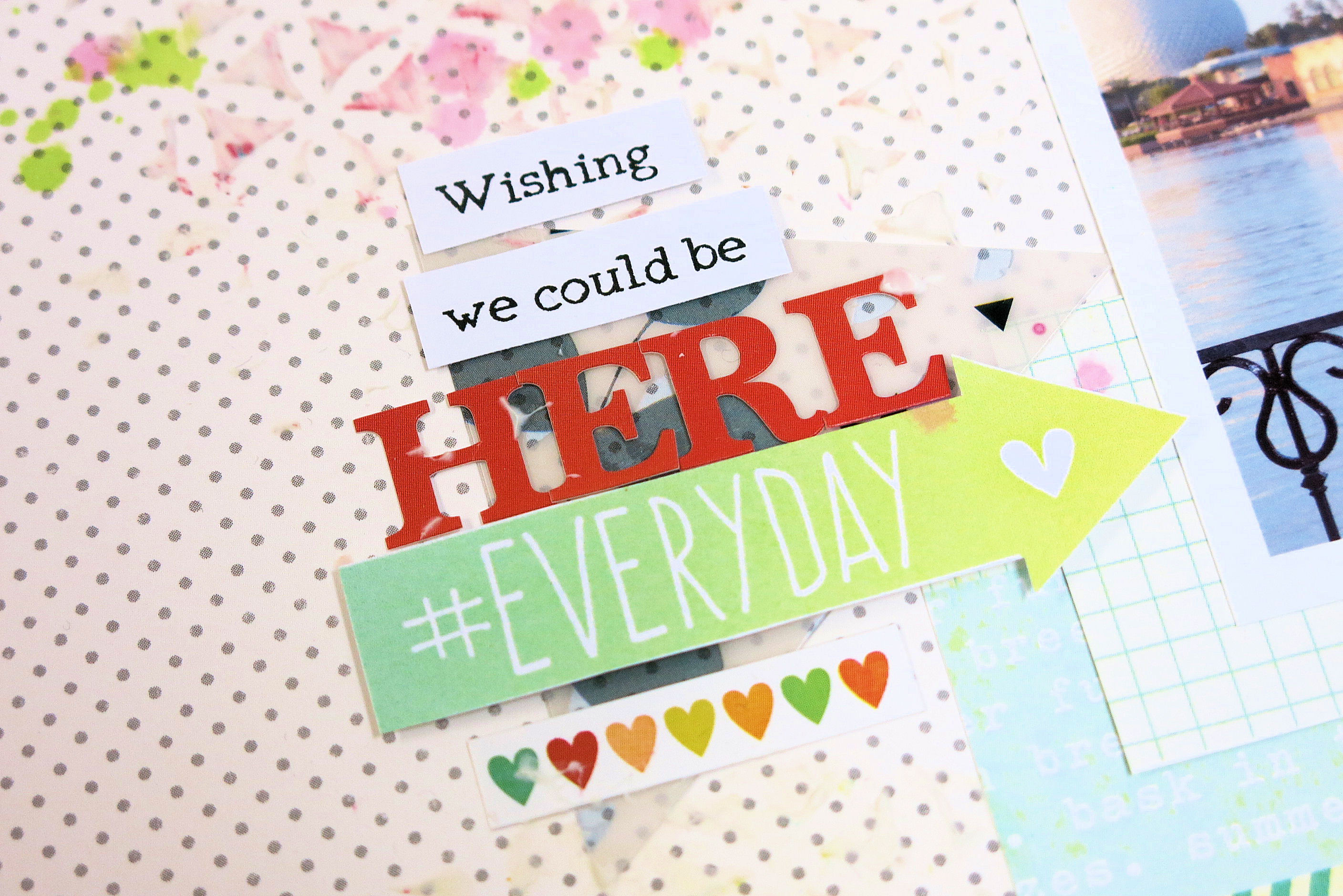 What a happy colorful layout…..love the mixed media you use on your layouts. This is going to be fun tonight!