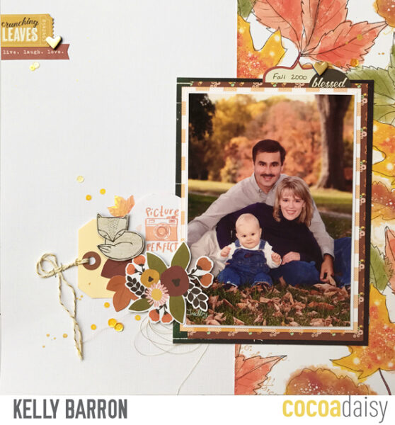 Often times busier papers work well in smaller portions on a page. By cutting the paper into a 4×12 strip, it allows the focus to be on the photo while still showcasing the stunning print.
