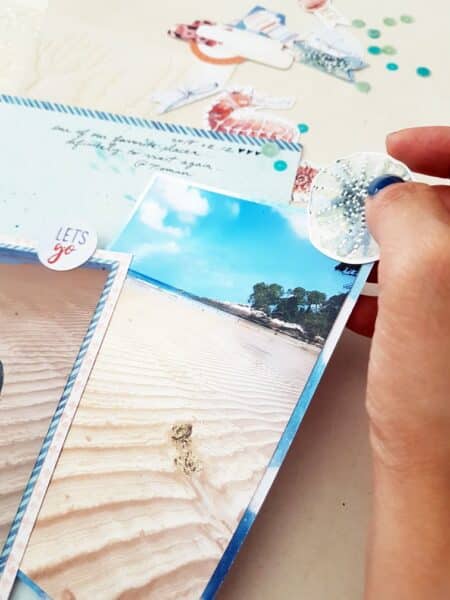 Estelle watered the ink down to create a puddle effect. I love how she used the the puffy stickers to frame her photos.