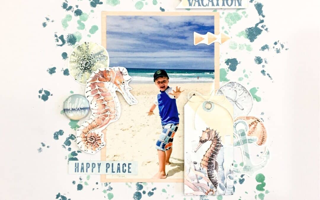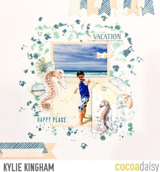 Kylie used the the ink and the spray to frame this adorable picture. I love the added layers!!! Here is what Kylie said: “I’ve layered both the ink pad and mist spray together using the stencil to achieve the background.”