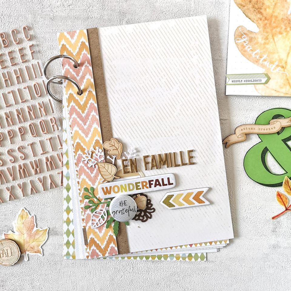 Estelle says, ” The warm colors of autumn are very inspiring for me. I take a lot of photos. The simple Dori is perfect for put together all memories and Scrap them quickly and easily”.