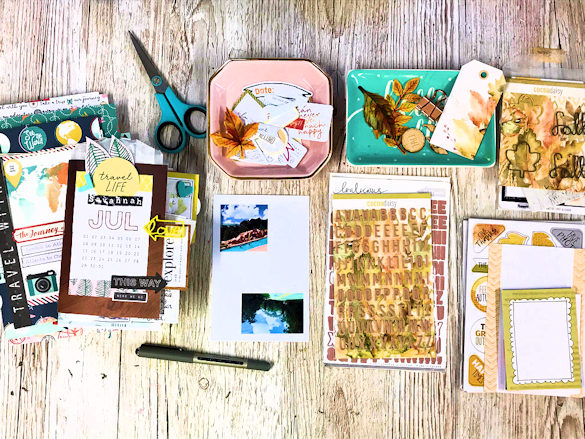 I started off by going through my kit leftovers and piling up what I thought would work well for this mini book. I like having a selection in front of me before I start a project like this.