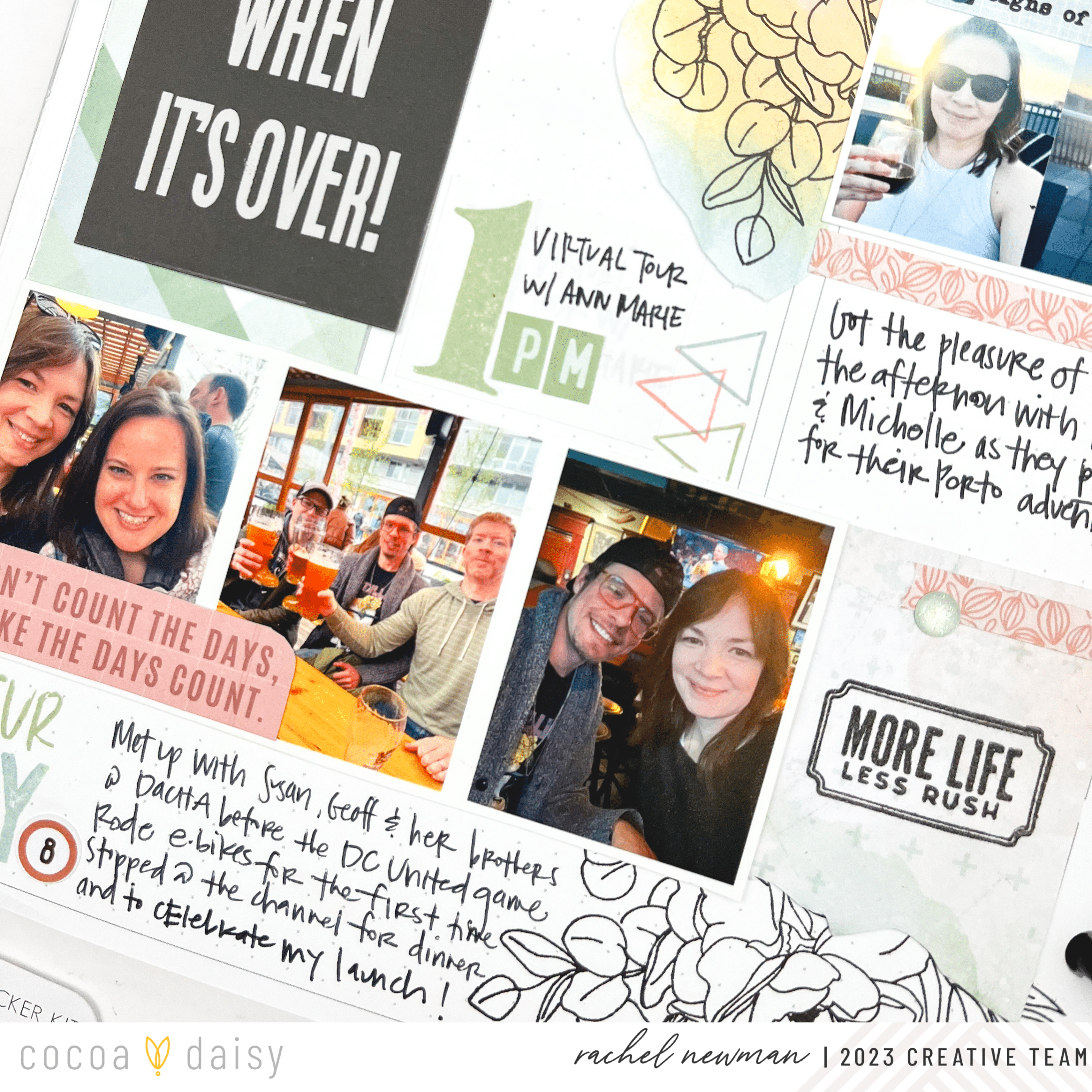 I don’t always include appointments in my memory planner, but when I do, it probably means it was significant. We are in the early stages of thinking about housing for when we return to Miami this fall, and we had our first tour with our agent, which I wanted to document. To highlight it, I decided to use the number stamp for the time of the appointment and use stickers from the Lillian’s Garden Planner Add-On Kit and my handwriting to fill in the details. You can do a full hourly layout, stamping every couple of hours (9 am, 12, 3 pm, 6 pm, etc). This would be a great way to fill space and tell a “day in the life” without photos.