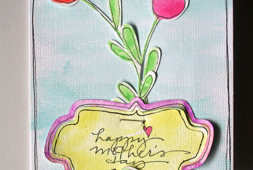Here is a quick card that I made exclusively with the digital cut files. I simply outlined the elements and wrote my sentiment with a fine tipped sharpie and then watercolored everything before attaching it to my base. Easy peasy! And since it’s created from a digital cut file, I can make several more for all the mother figures in my life.