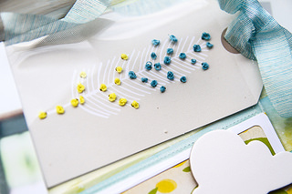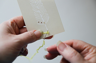 6) Place a small piece of washi tape on the back to start french knots on the tag.