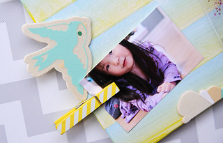 9) Add chipboard from the Prism kit, my daughter helping here.