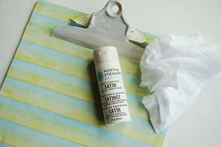 3) I want this project to be softer so using a baby wipe and white paint or Gesso, I lightly covered the washi tape.