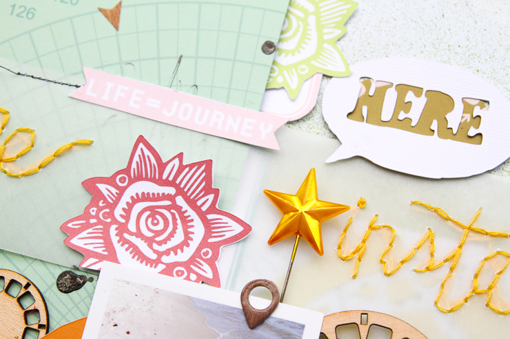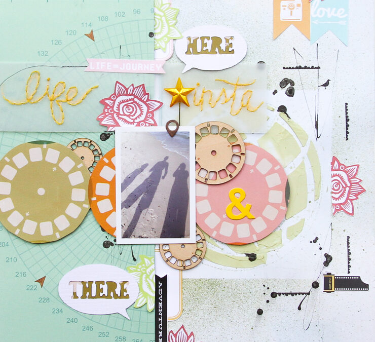 And here are my July projects where I used these printables.  They always coordinate with their monthly kit, they are great for clustering, and really help to get the most out of your kits.  I used just the main July Viewfinder kit for this layout, and felt the printables gave me more options and more for my money to get plenty more uses from just the main kit.  I used 12 printables on this layout.  Some of the labels and flowers I cut, and got more uses out of them that way.