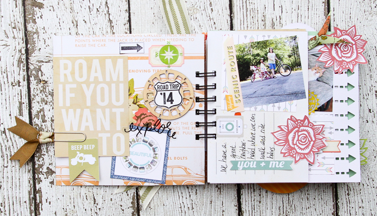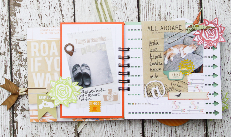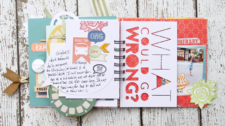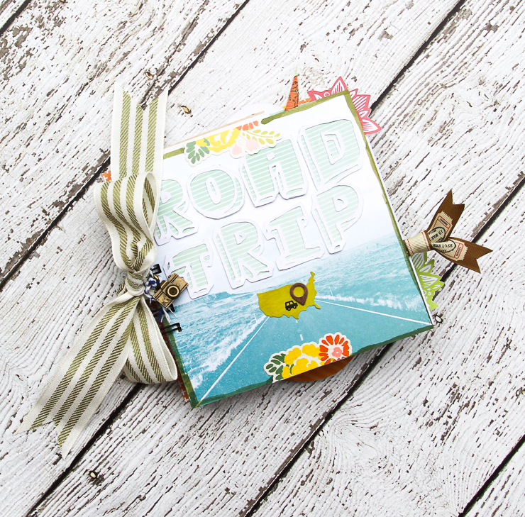 The next project where I used the printables, is the Road Trip mini album.  You can see two of the flowers peeking out from the side.