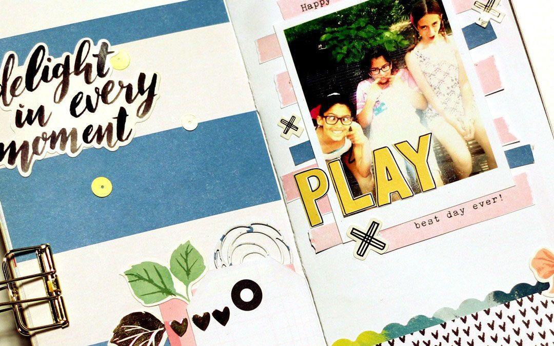 I use the Standard Dori as a family journal and love putting in memories made throughout the month. I caught up with some moments from last year that I wanted to document. Here is the first one, using the March Scrapbook Kit and March Cocoa Daisy Sketch. First, let me show you the sketch: