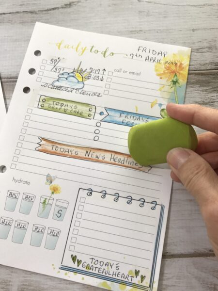 The first thing I do is begin brainstorming what different categories I want represented in my daily planner pages. Do I want to remember the news headlines for the day? Do I want to remember what made my heart grateful? Do I want to see a record of the weather? Do I want to see a list of the top three things I’ve accomplished each day…?