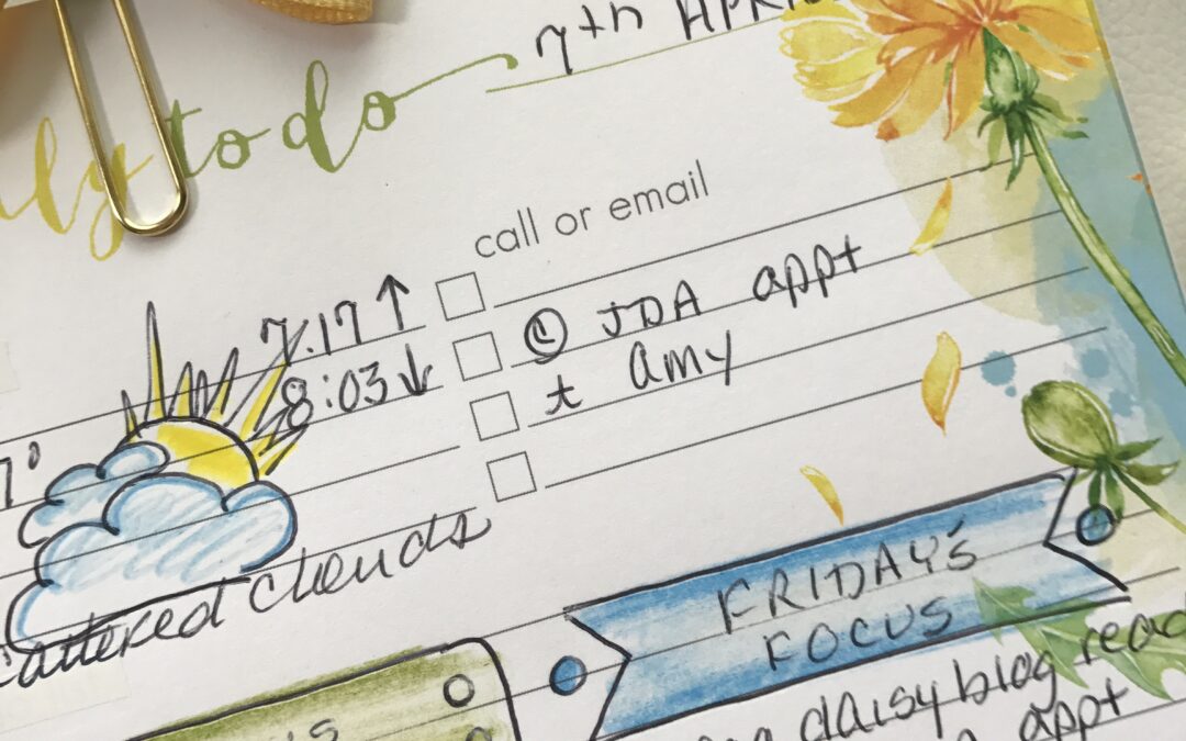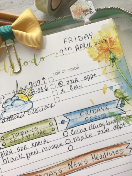 Before going to bed, I’ll write up a quick scratch list of what needs to be accomplished for the next day and set it atop my Cocoa Daisy Planner!
