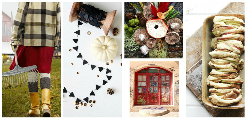 So today I am bringing you some pictures and links to some of my current favorites. Some are new to me, and others are just so good every time a new image or post is uploaded. I made this collage because I love the mood boards that I see all over the place. They are great inspirations in and of themselves to jumpstart a scrap layout based on color or pattern or even a sketch! I picked 5 categories to be represented and they are all fall-themed right now too. So enjoy if you are in autumn and tag along if you happen to live somewhere that is winter, spring or summer right now!