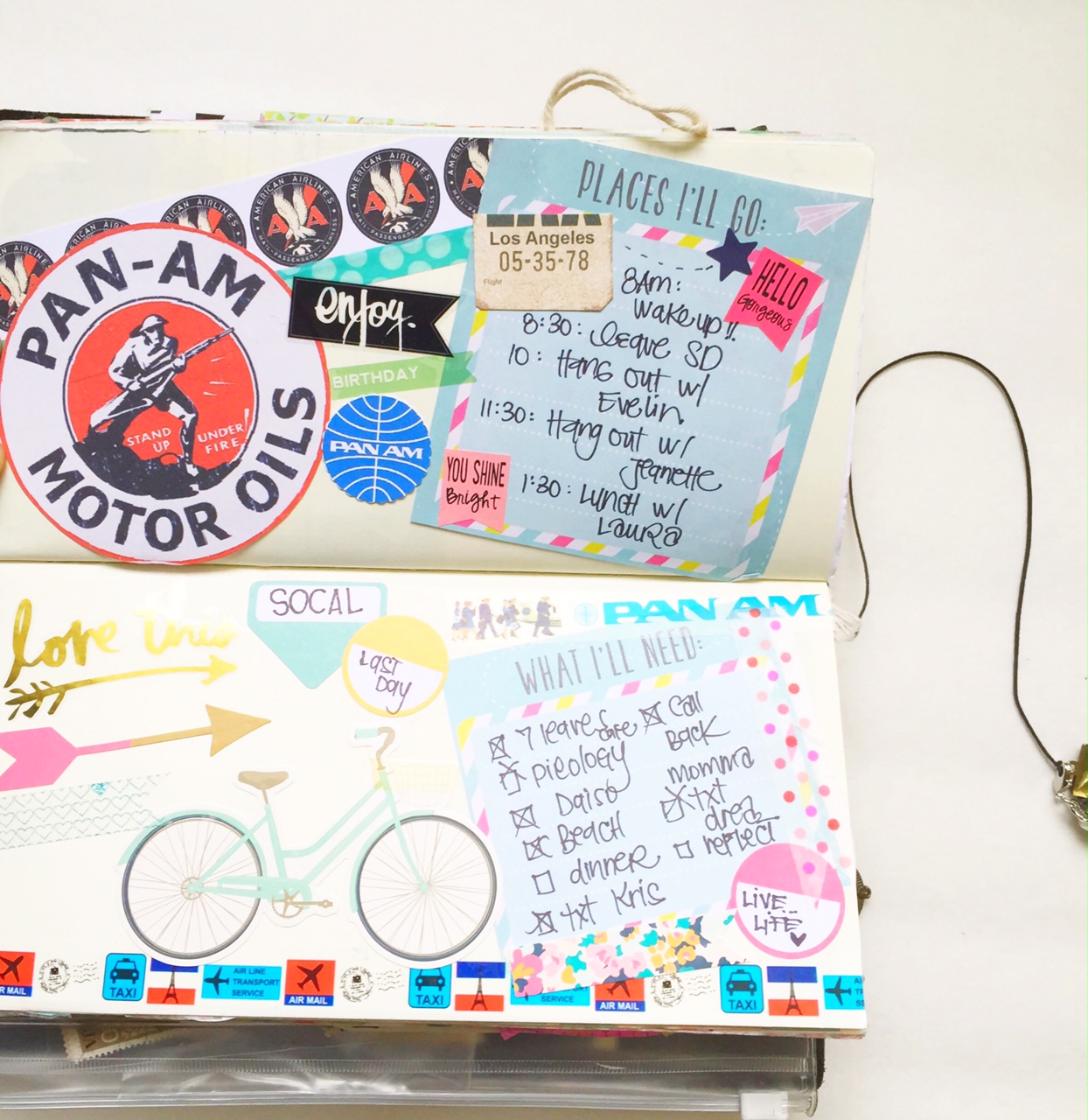 In my Midori I don’t only plan, I also create and like to scrap/ collage on the go. I use it for challenges (#creativemidorichallenge on my instagram: livelifeandcreate) and journaling as well. So this is a mixture of art journaling and planning that’s what I love about the midori you can do whatever you want in it. Do not get me wrong, I haven’t given up my ring binders just when I am traveling for 2-3 days it is easier for me to use. The heaviness of an A5 fully set up planner can range around 5-10 pounds. Crazy right? I weighed my Kikki-K and it was 5.8 lbs the inserts do weigh it down and so do the goodies. My Midori is only 3.4 lbs- that 2.5 lbs+ does make a difference to our arm/ shoulder. At least for me it does.