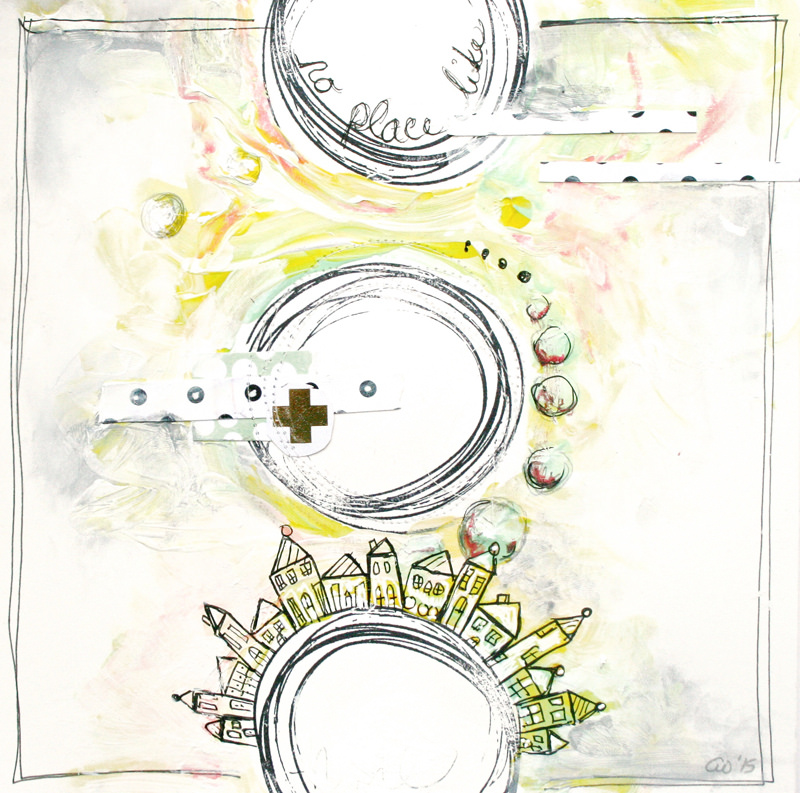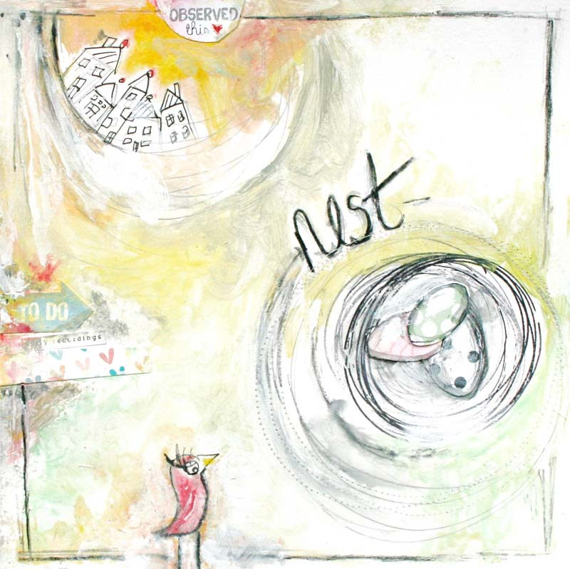 Ashli used her scribbled circle stamp a lot, which is appropriate, seeing as it’s something she WOULD DO on her own. Now we can all be like Ashli with the new stamp in the Sage & Mint kit. Yay! Here are two mixed media projects: