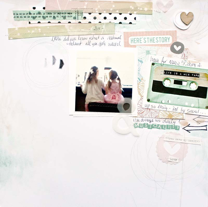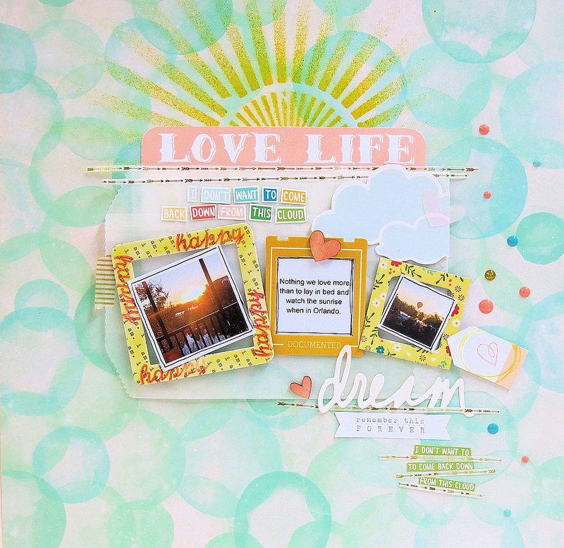 Sharmaine also did a layout that features the “This is the life” phrase from the DITL: May kit. It’s a nice graphic contrast to her nests of string.