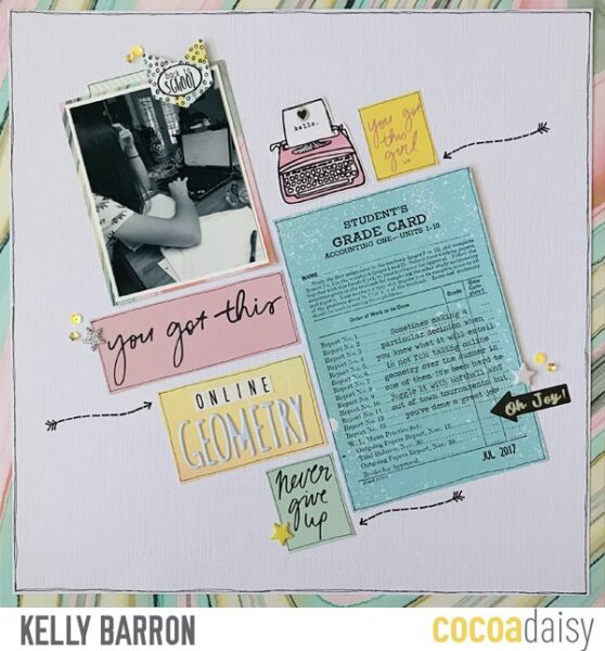 Kelly’s page, utilizing that cool grades card is amazing! I love the angels and her typed journaling on the 4×6 card.