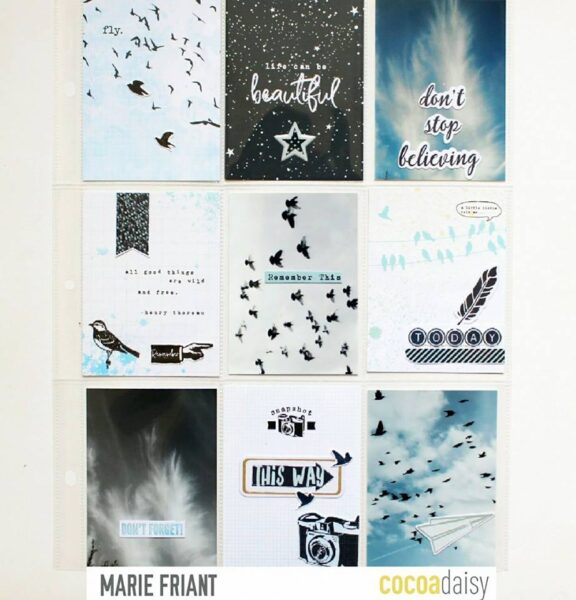 Suz created a a 2 page pocket page. Perfect for those of you using the kit to keep your weekly documentation projects up top date. I love the title card with the journaling under the bird on the wire!