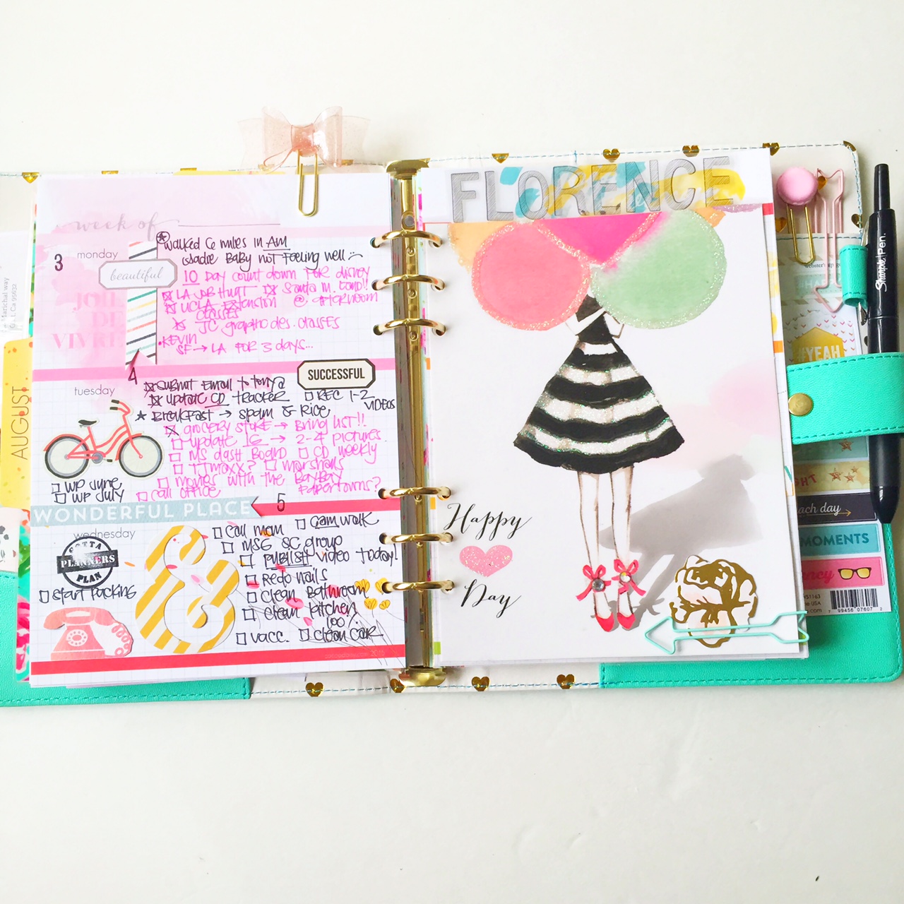 I absolutely love variety, which is the same when I scrapbook so you’ll see that style reflect in my decorated pages. I start with decorating the page first, then move on to writing in my plans.