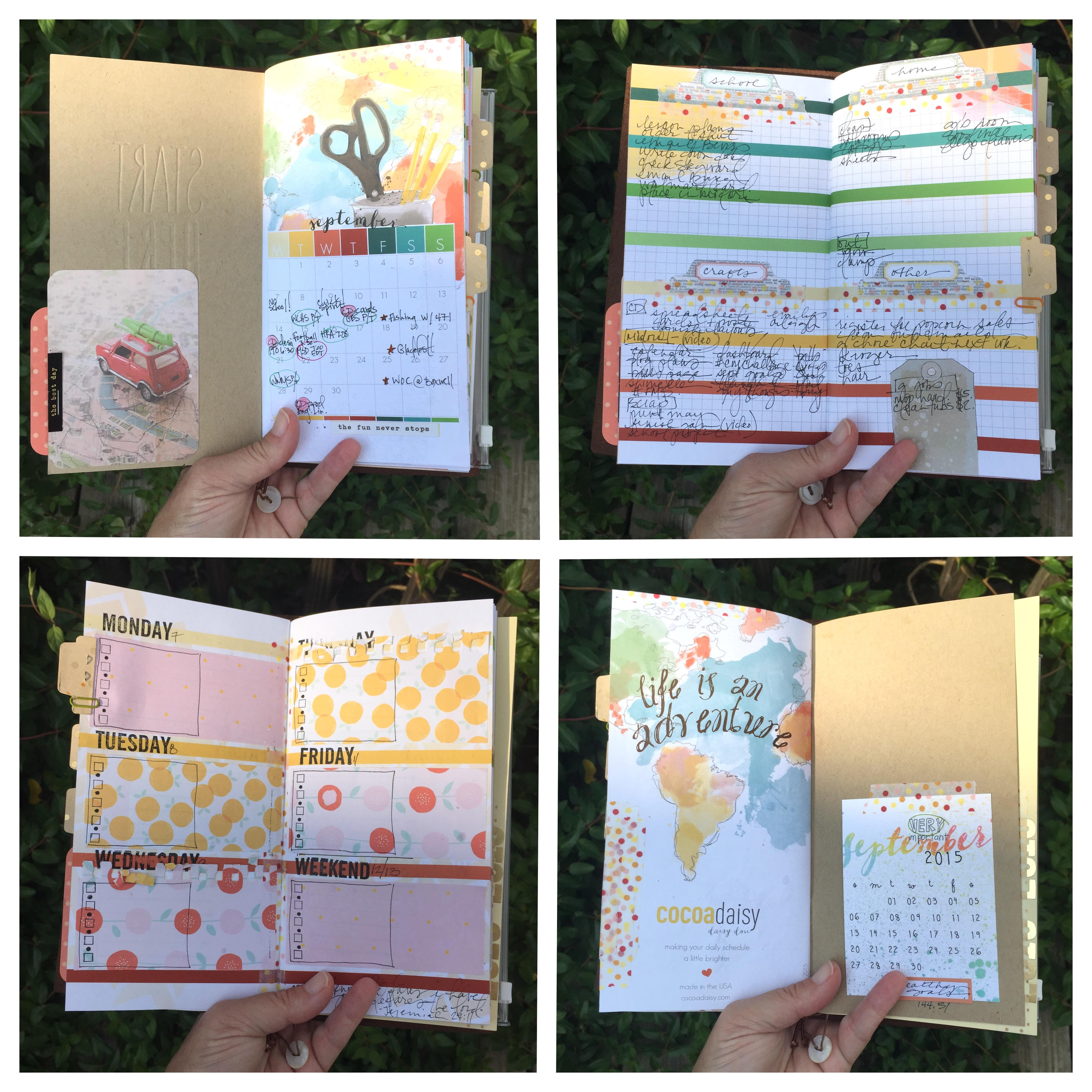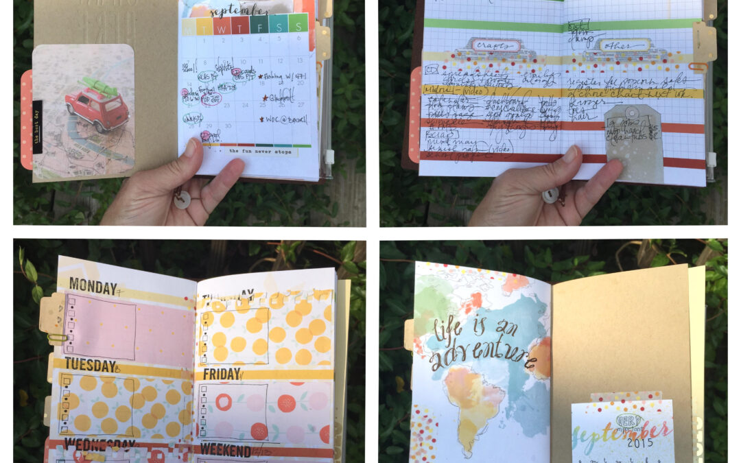 I am the proud owner of a new Midori Traveler’s Notebook and have enjoyed getting it set up with my new September Daisy Dori.  Did you know that Cocoa Daisy is now offering monthly printed versions of the standard Midori sized notebooks?  They are just delightful.  I have a few samples of my decorated pages above and a little video walk through below.  I can already tell that I’m going to love it.  “Life IS an adventure” with Cocoa Daisy!