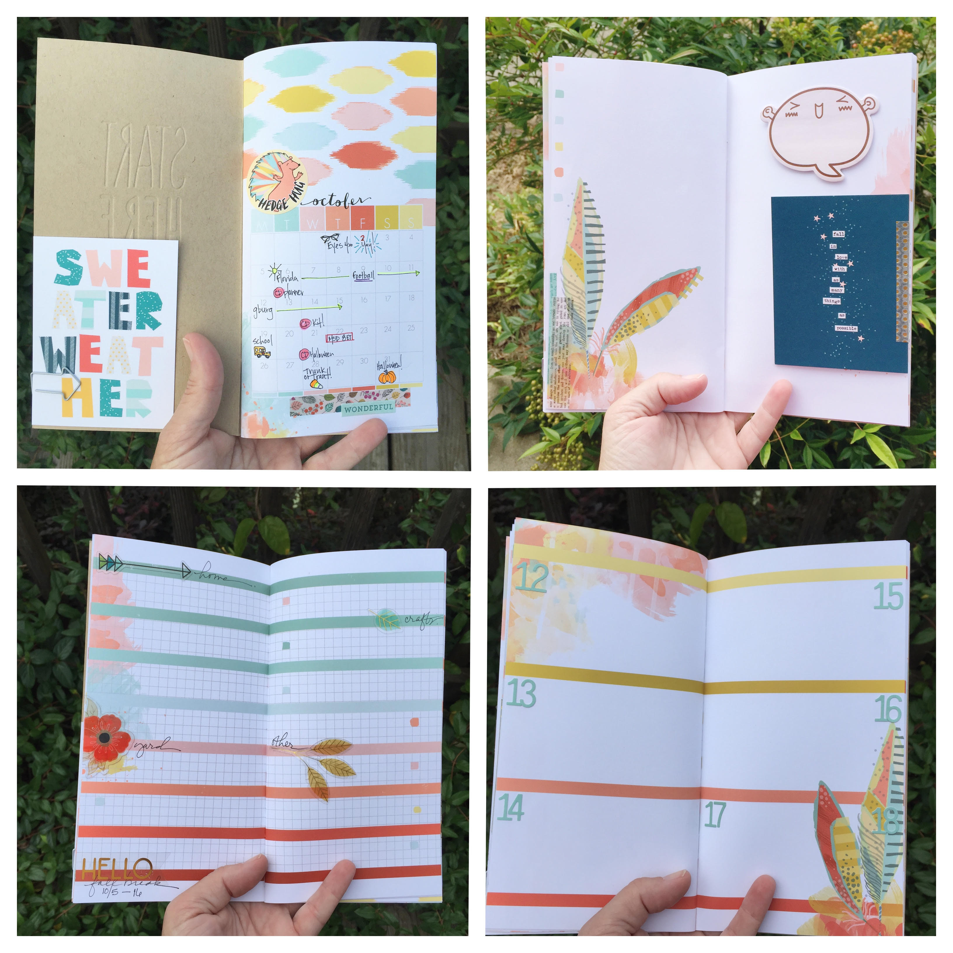 This week we’re celebrating the “Plannerversary” of the Daisy Day Planner!  I, for one, am so grateful to Christine for pursuing this goal.  I have fallen in love with the newest member of the Daisy Day Planner Team, the Daisy Dori.  This type of memory planning is absolutely perfect for me!  Dare I say “Planner Peace?”  I have a little set up video for you today of my October Daisy Dori and a walkthrough of my finished September Daisy Dori.  I thought it was very interesting to compare the two as I went.  This is only my second month using the Midori Traveler’s Notebook set up.  I’m on a definite learning curve, but it’s a fun learning curve!  If you haven’t explored the Midori Traveler’s Notebook planning/journaling option yet, I highly recommend it.  There are so many things you can do with it!  Like I said earlier, I am in love!  🙂
