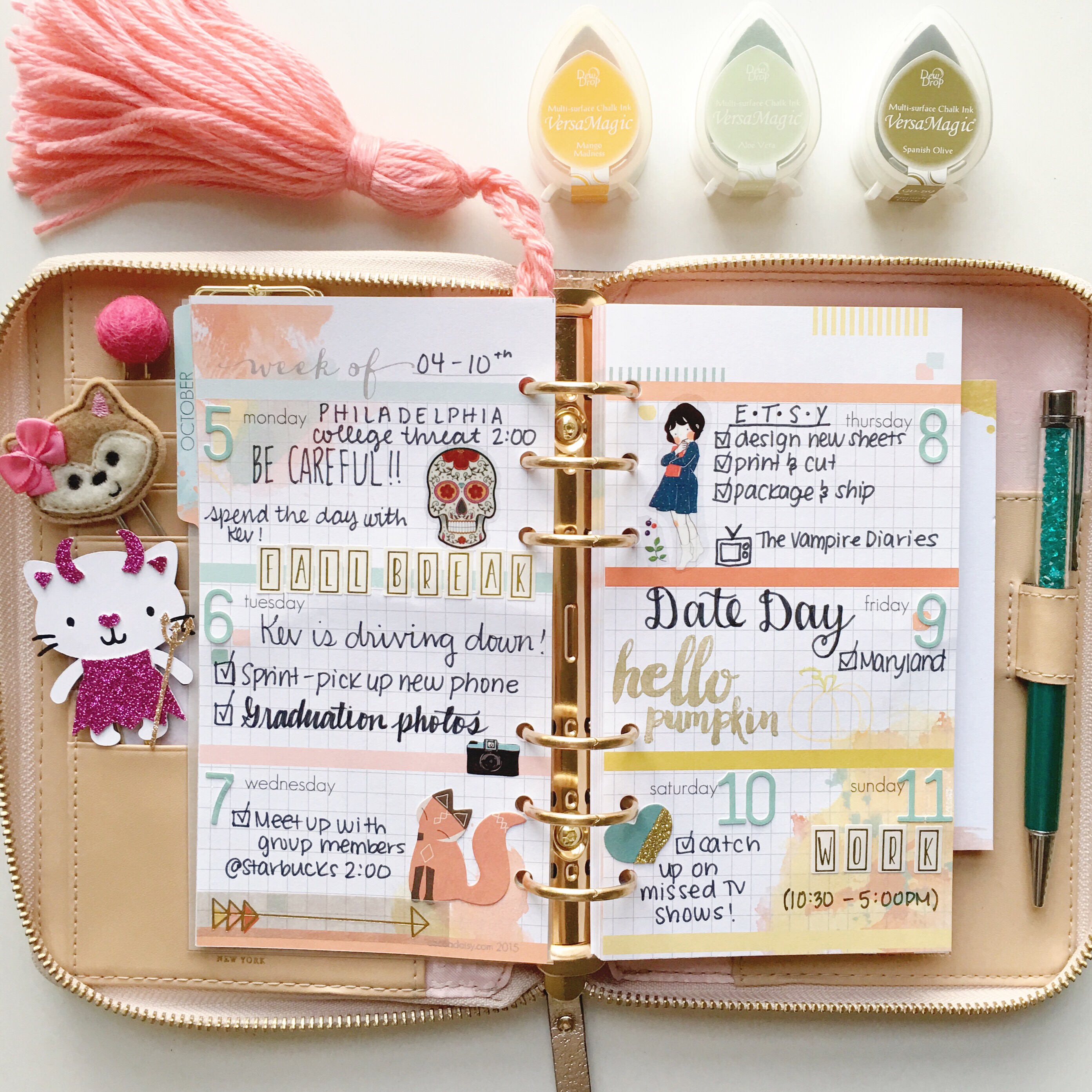 As you can see, I like to embellish my planner with some cute clips. I get most of mine from Etsy but feel free to use whatever you like. I loved that this month’s planner kit included a tassel from HautePinkFluff, I never owned one before but now I can’t get over how cute it makes my planner look!