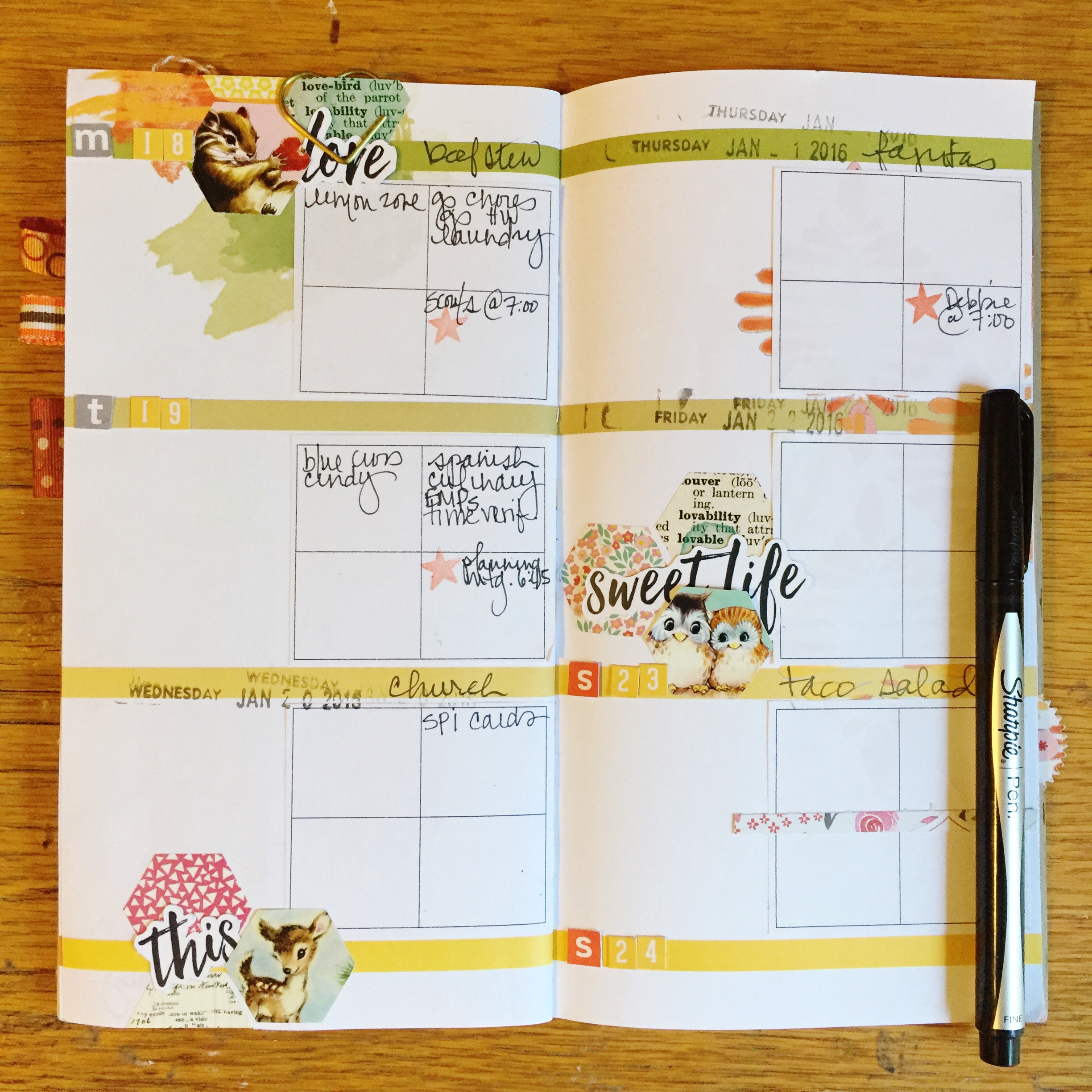 I have been madly in love with the safari theme in the January planners, but I decided to take a little break from it. Emily had said the exclusive stickers from the January Day in the Life Kit looked so “Doris,” and I have to agree, but who doesn’t love adorable woodland animals? I decided to use them along with some other leftover DITL bits in my planner this week. I am just so impressed with all the exclusives that are consistently offered in that kit!
