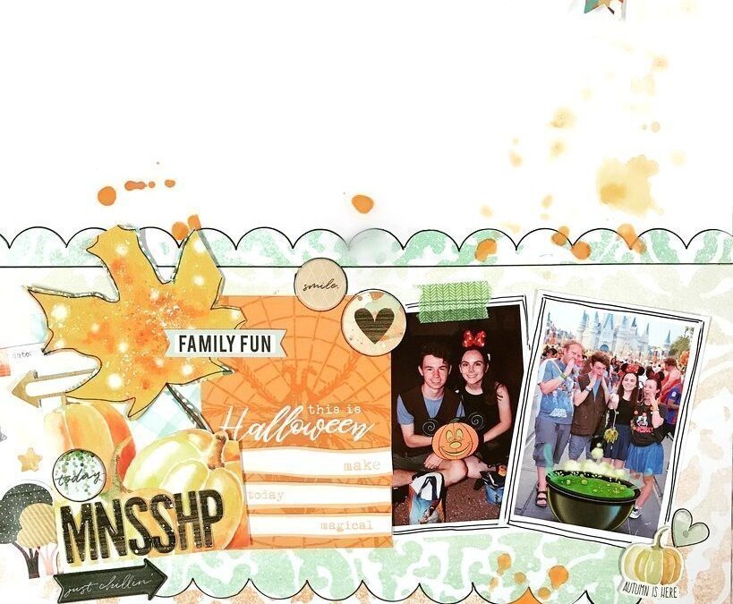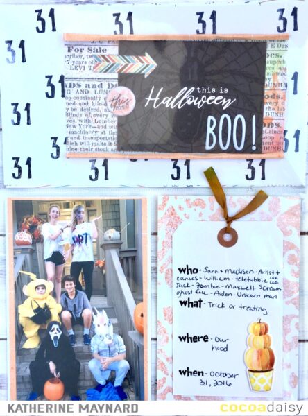 How sweet is this layout by Kylie! I love how she used lots of varying papers from the Memory Keeping kit for colour and texture. The ‘BOO’ text is a cut file that she purchased from the Silhouette store.