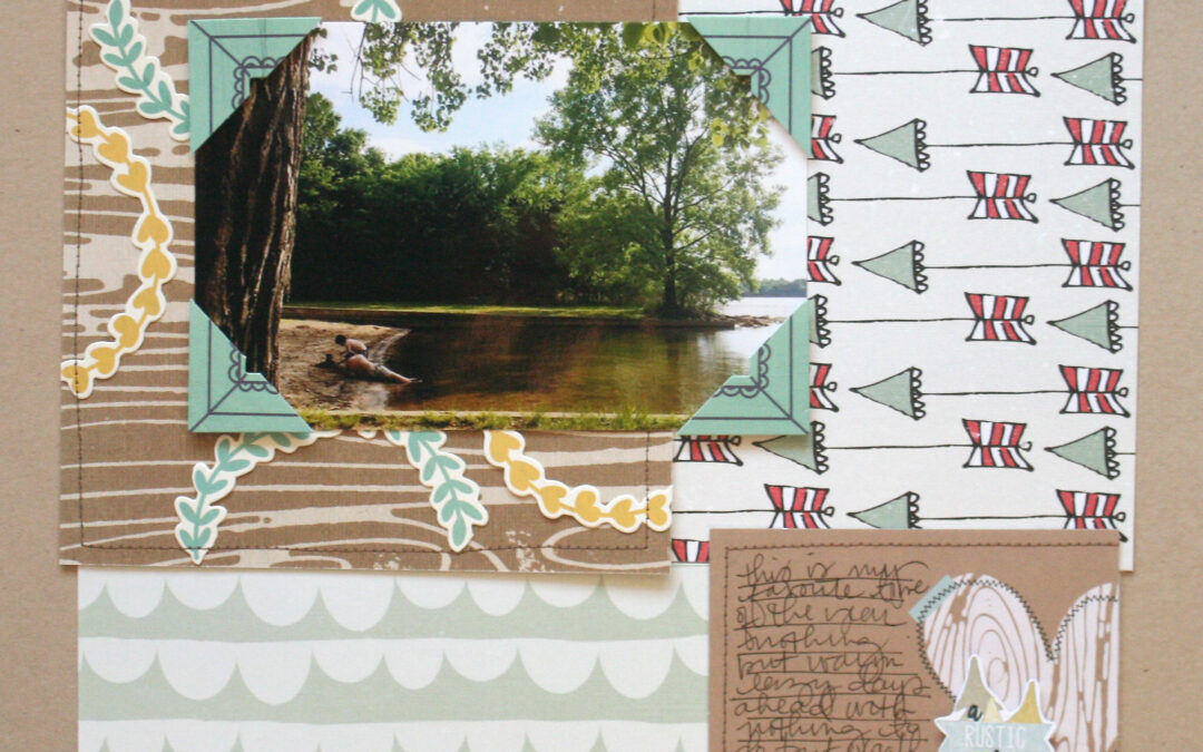 I trimmed out more of those cute cards for this summertime layout and used the exclusive 6×6 patterned paper for my background. I just love the whimsical feel of this kit.