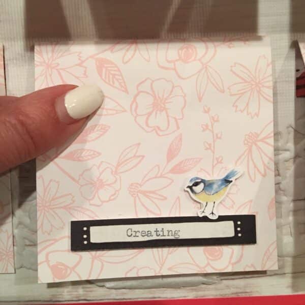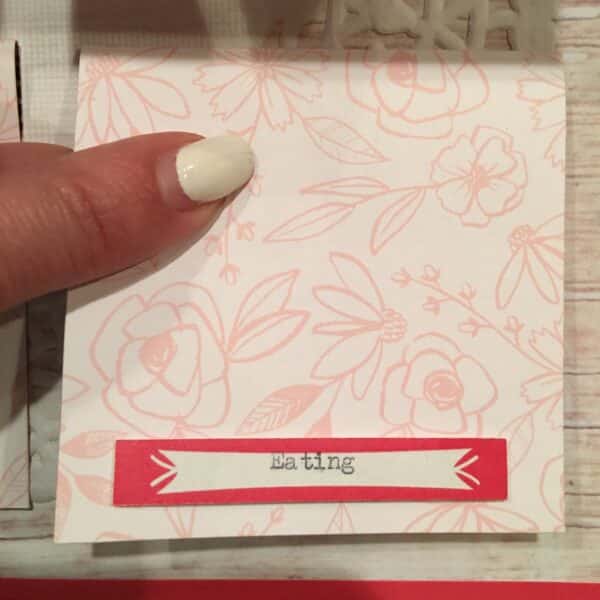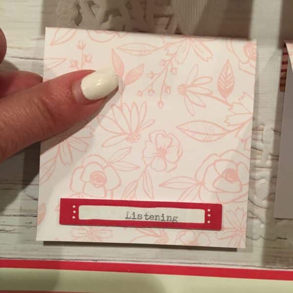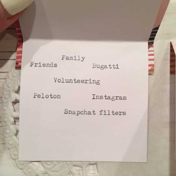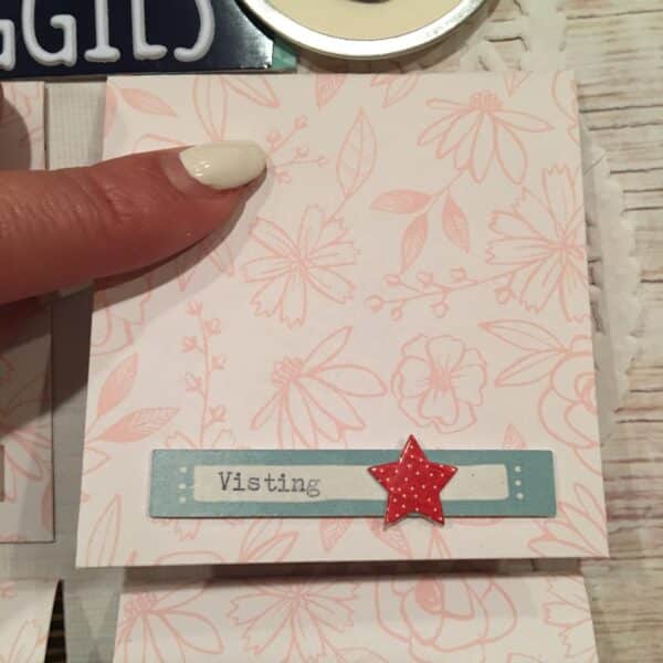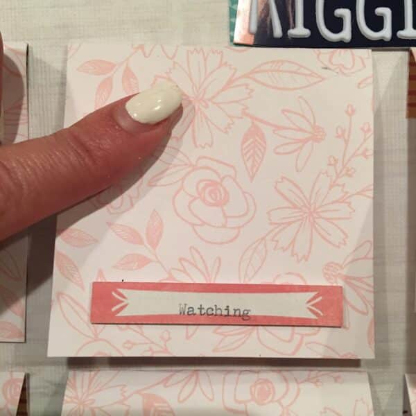 My tip is to hide your journaling. I had fun making these flip up squares to hide everything about me. I also typed everything out because it wouldn’t all fit on a 3X3 square.