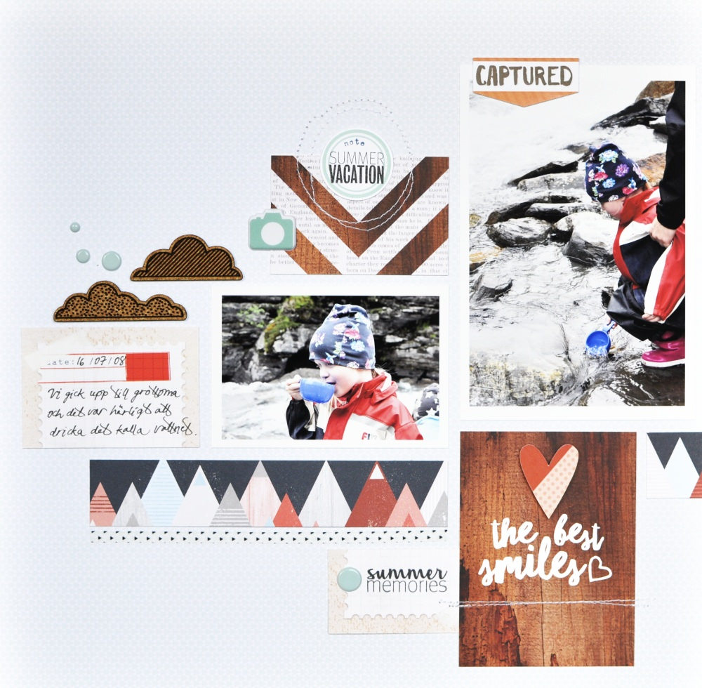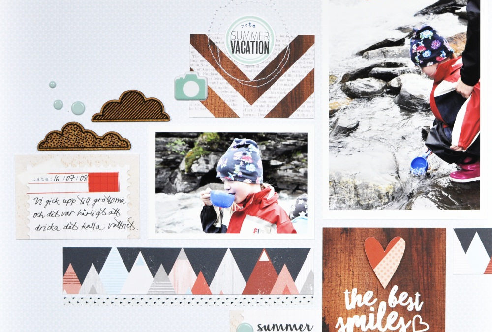 Let’s start with Anna. She created 2 beautiful projects with the kit this month. First a smaller pocket page spread.