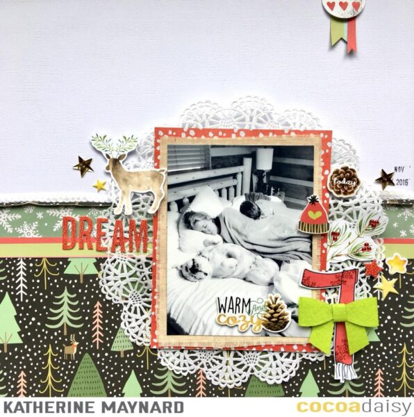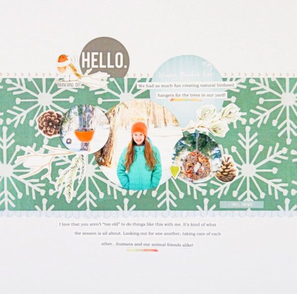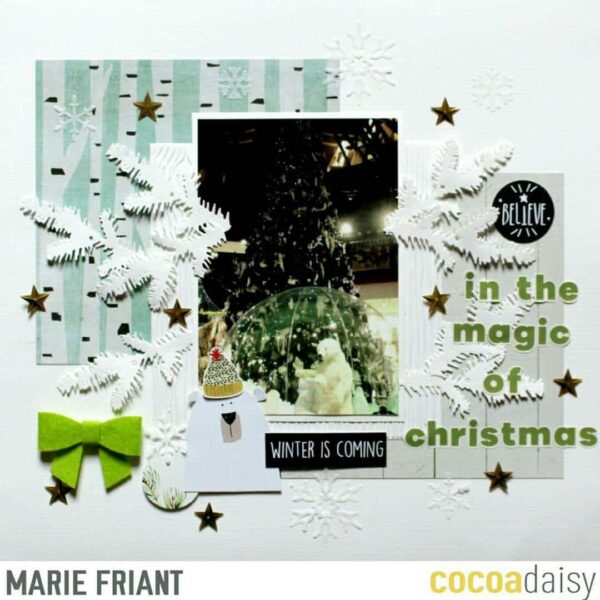 I find it very challenging for those who don’t know winter and I think she succeeded so well to give a Christmas/Winter feel to ther layout!