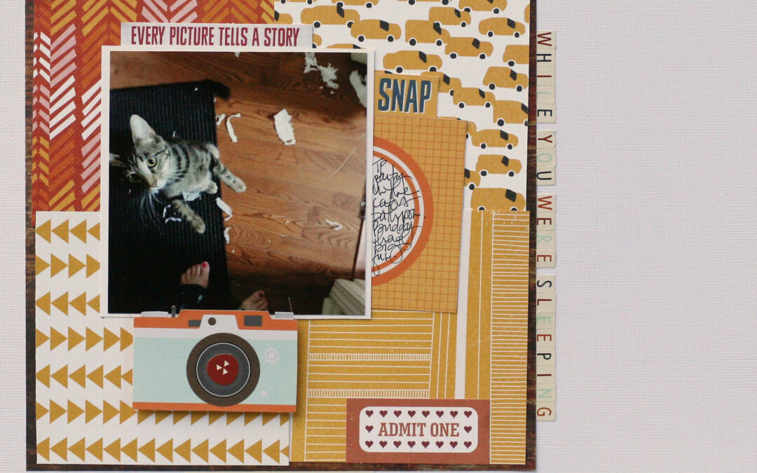 I hope your October Cocoa Daisy goodies arrive shortly! I sure have had fun playing with mine. My favorite thing this month was mixing the patterned papers on my layouts. I thought the colors and patterns were especially fun this month. Below is my unboxing video is you want a closer view of the goodies I received in my box. 🙂
