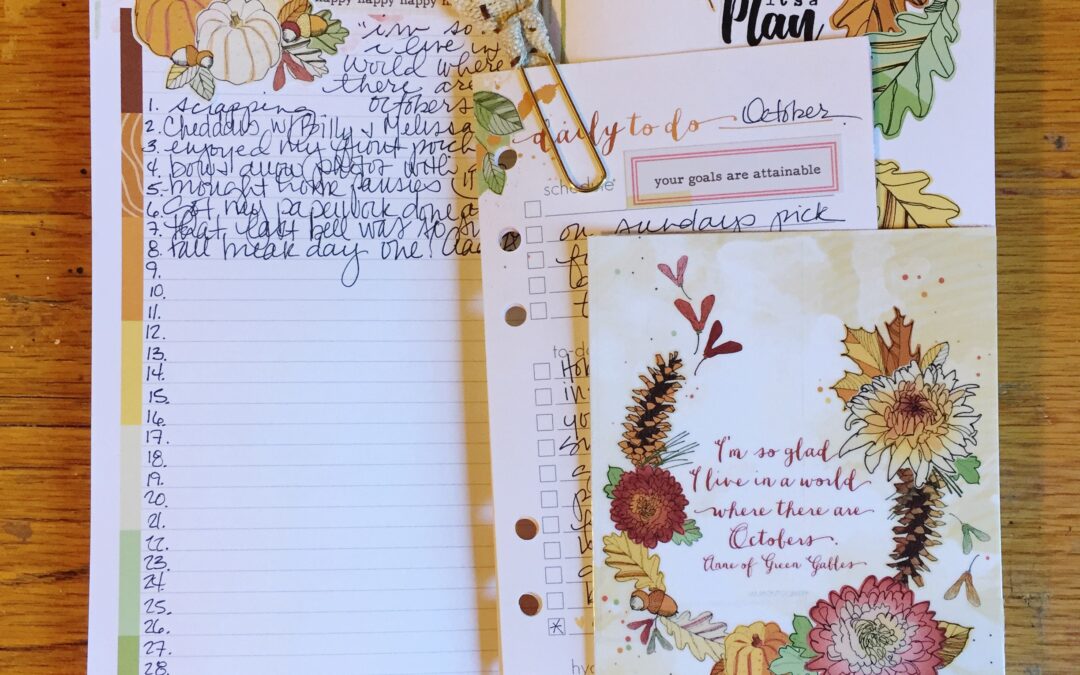 This month I am experimenting with adding personal planner pages to my DaisyDori.  On this spread I added a pocket using a dashboard and packing tape.  I then slipped in a set of the week on one page personal planner pages to try to beef up my weekly goal setting.