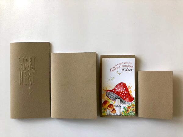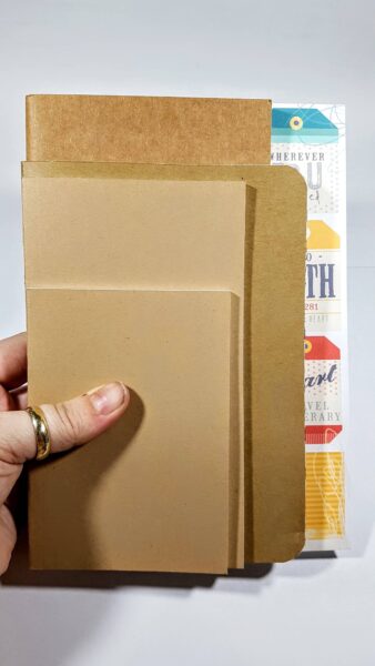 Here is another view of the stack,(I have rounded the corners on the B6 in this photo) this time adding an A5 dashboard into the mix to give you a comparison of that as well. Especially if you are wanting to cut up your B6 Dori and punch holes for a ring binder. The B6 cut in this manner would fit very nicely in a Foxy Fix Personal Wide Rings!